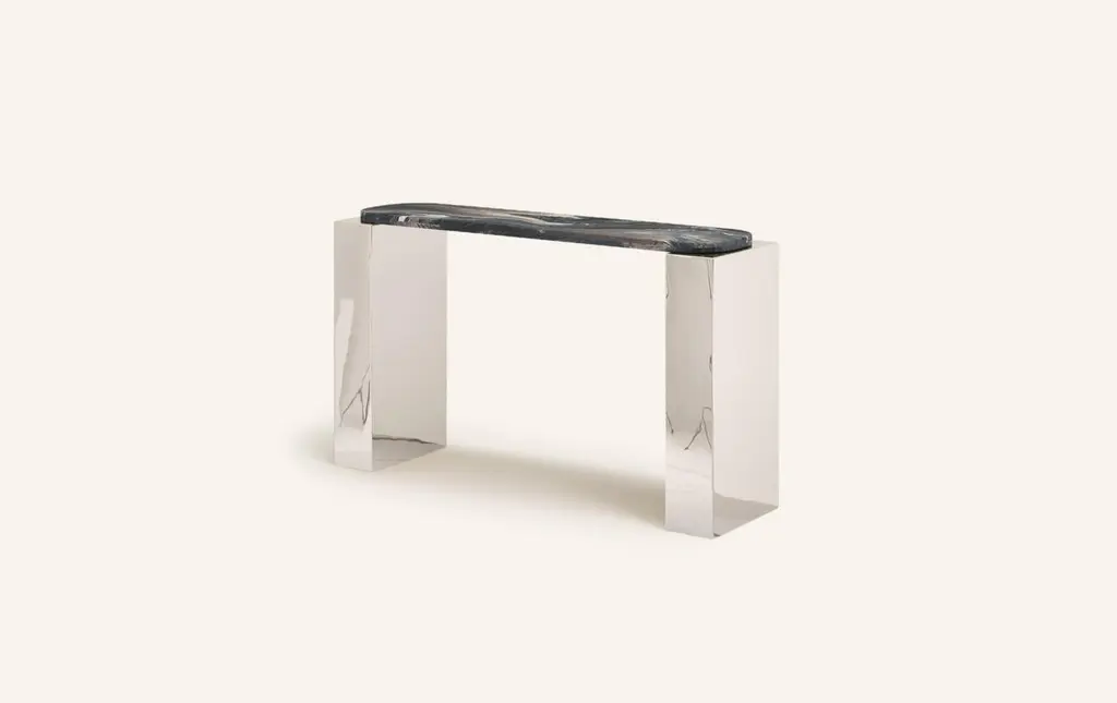 Form(la) Cubo Console Table 74”l X 17”w X 36”h Ondulato Marble & Chrome
