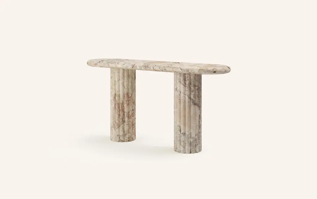 Form(la) Fluta Console Table 48”l X 16”w X 30”h Breccia Rosa Marble