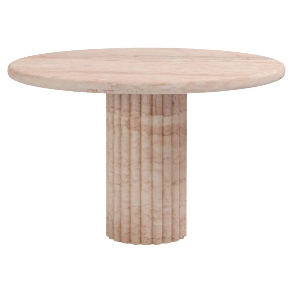 OUR MOST COVETED COLLECTION AND MODERN TWIST ON AN ANCIENT ROMAN CLASSIC. RECENTLY REFRESHED WITH A MORE PLAYFUL AND ROBUST PROFILE.DIMENSIONS:72”L x 16”W x 30”H: - 2.25" THICK TABLE TOP- 10"Ø FLUTED BASE(S) WITH 2" FLUTES- 6.25"Ø CUTOUT IN TABLE TOP WITH 6"Ø INTERLOCK ON BASECONSTRUCTION:TABLE TOP: - 3/4”x 3 SLABS WITH FULL BULLNOSE- HOLE IN TABLE TOP INTERLOCKS WITH BASE OF TABLEBASE:- HOLLOW CONSTRUCTION USING 3/4” STONE SLAB- FELT LINING TO BOTTOM OF BASE FOR FLOOR PROTECTION- STONE FINISH TO TOP OF BASEWEIGHT:72”L x 16”W x 30”H:- GROSS WEIGHT INCLUDING WOOD CRATE 600LBS