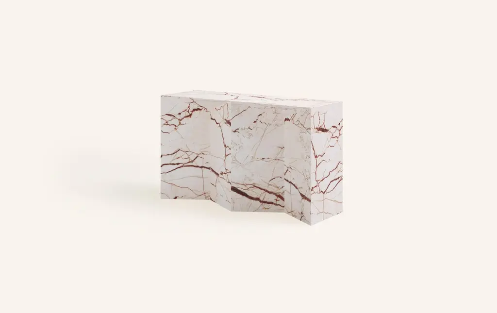 A BOLD AND EXPRESSIVE FORM WHERE GEOMETRY AND HARMONY COLLIDE. ITALIAN FOR WRINKLE, 'GRINZA'S ZIG-ZAG STRUCTURE' IS BOTH TIMELESS AND ELEGANT. DIMENSIONS:48”L x 16”W x 32”H: - WRINKLED BASE WITH 12" FOLDSCONSTRUCTION:- 3/4" THICK TOP & BASE- HOLLOW CONSTRUCTION USING 3/4” STONE SLAB- FELT LINING TO BOTTOM OF BASE AND BACK OF CONSOLE FOR FLOOR & WALL PROTECTIONWEIGHT:48”L x 16”W x 32”H: - GROSS WEIGHT INCLUDING WOOD CRATE 315LBS