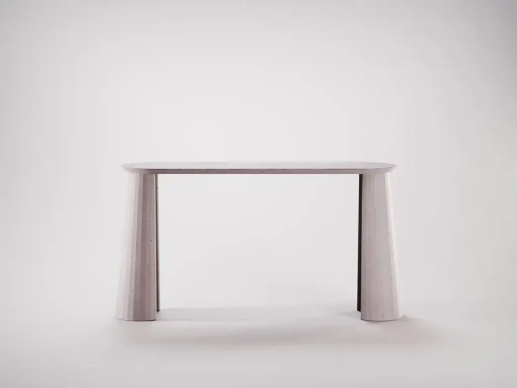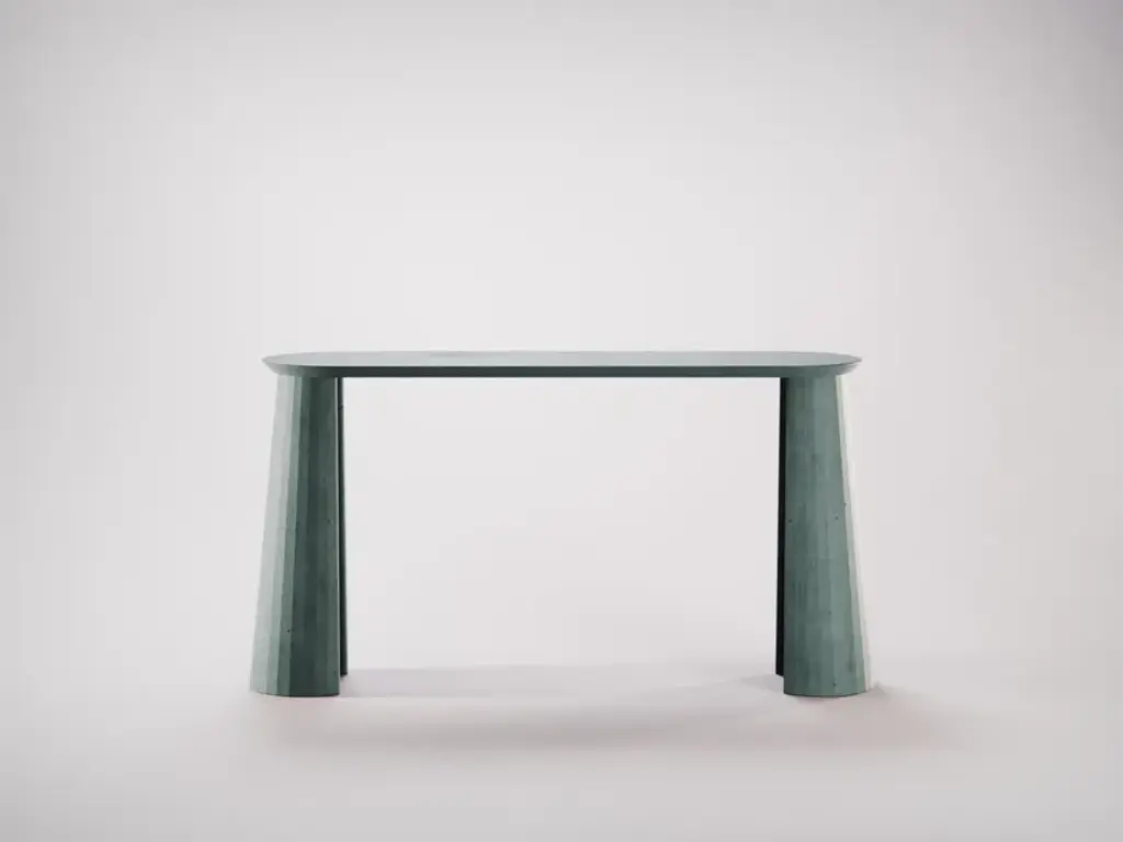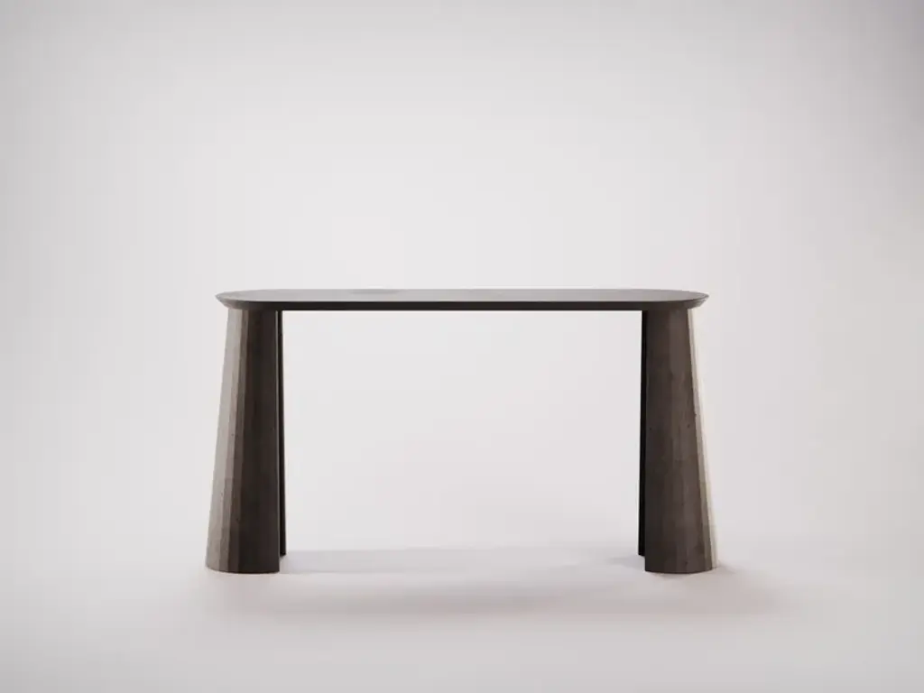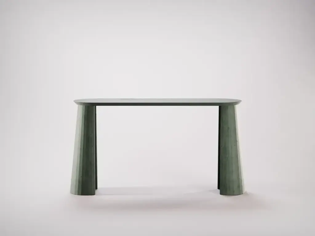 Fusto Console Table I is part of a collection of modular system in ultra high performing cement mortar. UHPC tabletop and base colored in the mixture and sandblasted. Each item is hand treated and is protected with water repellent products to reduce the absorption of oily substances and to minimise the making of stains. Fusto is the series that introduces the new design approach. As in classical architecture, Fusto is the column that holds tables, consoles, bookcases and pedestals. Volumes and proportions are integrated in a timeless geometry, enriched with facets that make the colour vibrate in a game of lights and shadows.Colours: Brick, Silver, Cream, Ink, Powder, Dark Chocolate, Fir, Ultramarine, White.