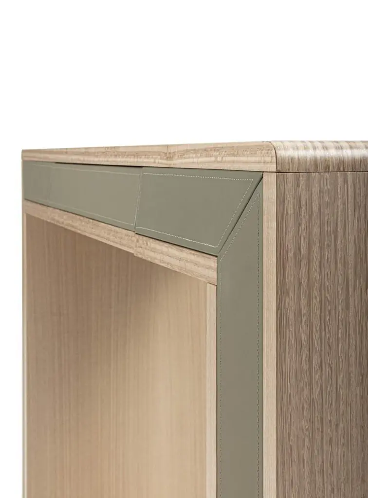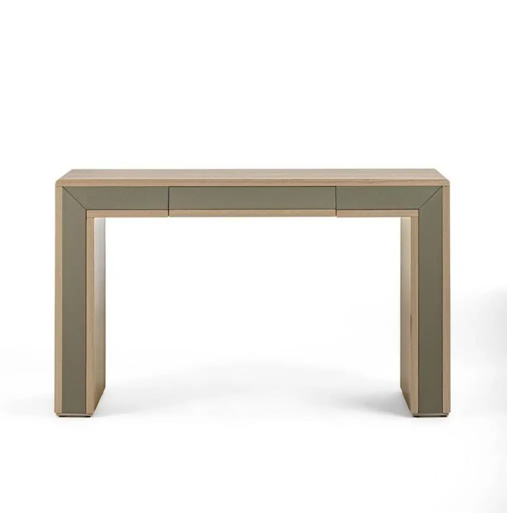 Galileo Lux Modern Console Table In Eucalyptus With Leather Inserts