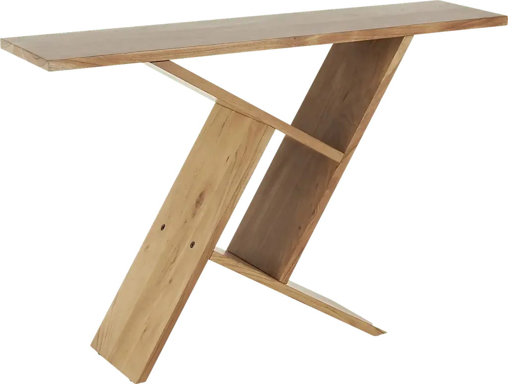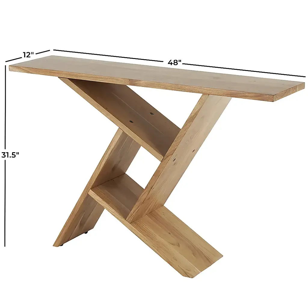 Designed with timeless sophistication, rich old-world textures and warm hues come together for a refined classic taste of luxury. A combination of acacia wood and iron gives the Ganari console table a sturdy and appealing natural look. Rectangle living room furniture showcases a stunning oiled brown finish, adding a touch of elegance and refinement. One of the main features of this acacia console table is its geometric patterned legs, which add a unique aesthetic appeal. Customer assembly is required.