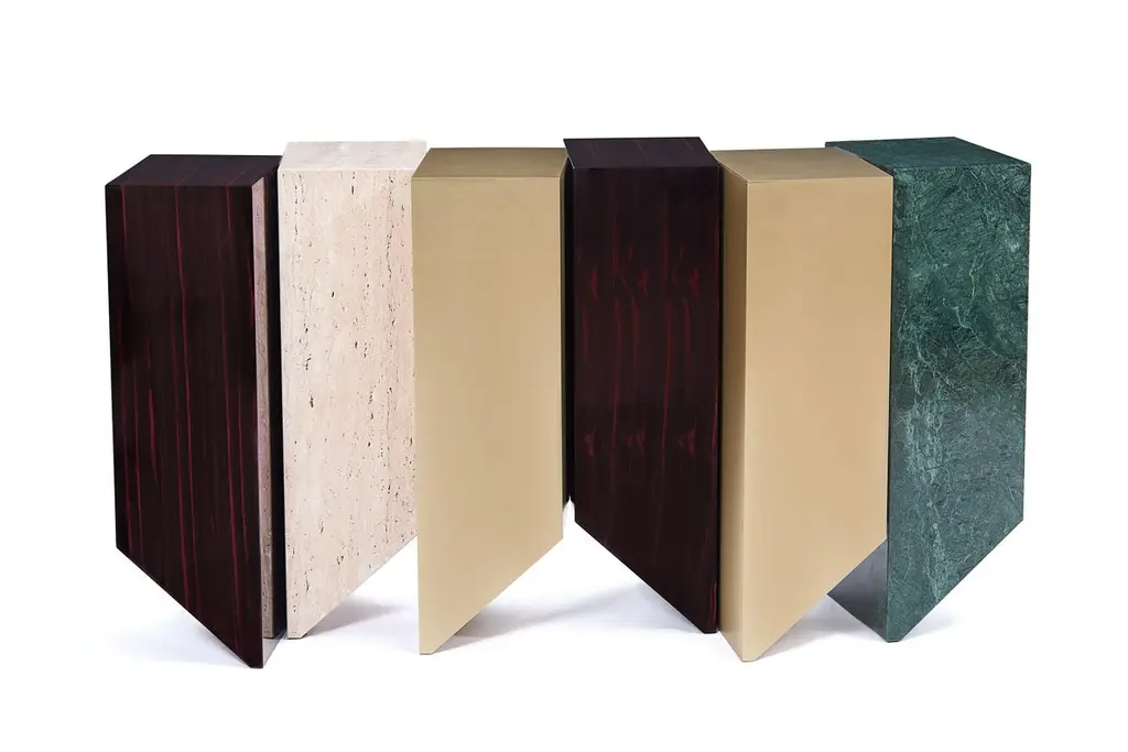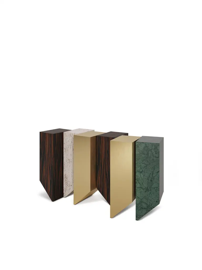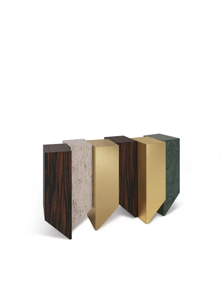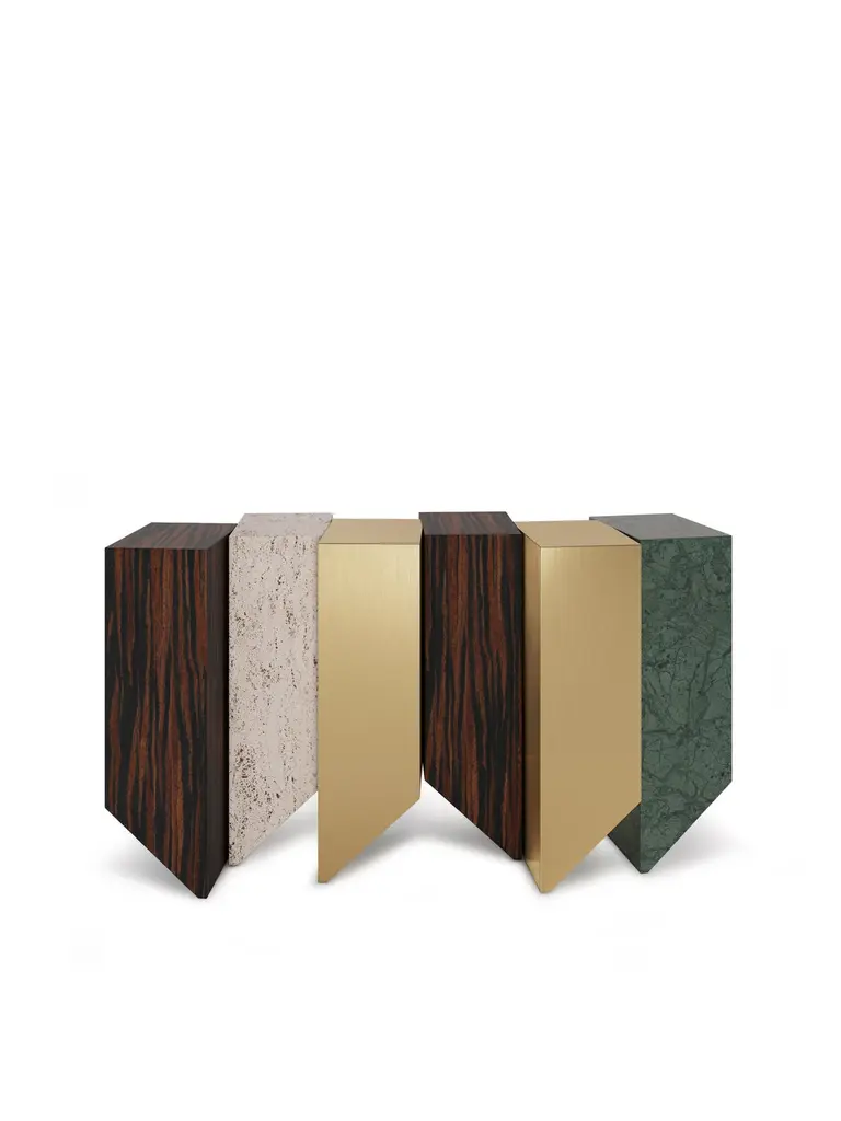Geode Console by Ginger & JaggerDimensions: D 50 x W 150 x H 80 cm. Materials: Marble, travertine, wood veneer, and brass.Finish: Wood veneer elements in Amara Ebony in polished finishing; marble elements in Romano Travertine in natural finishing and Guatemala Green marble in honed finishing; metal elements in Brass in Brushed finishing.This product is suitable for custom size. This product is made for living areas and interior spaces only. This product is not specified for bathrooms, spas, or humid environments. Not suitable for exteriors. Available in different finishes. Please contact us.Launched in Europe in 2012, Ginger & Jagger is a product design brand that prides itself on creating handcrafted high-end contemporary products inspired by Nature.Designed and produced in Porto, a land of craftsmen and age-old tradition, Ginger & Jagger’s Earth to Earth collection is an evocative poetic realm, where Nature’s sculptural shapes are made eternal through handcraft, with unique artisanal techniques and an outstanding blend of superb materials such as brass, silver and copper, marble and stone, and wood.The designer's compass is kept by an uncompromising desire for creative innovation balanced with the integrity of the materials, the artisanal techniques employed, and the brand's very own narrative element.The artisanal techniques availed range from brass casting, wood, and marble marquetry, hand-hammered metals, and hand-sculpted marble.Striving towards sustainability. Ginger & Jagger supports organizations worldwide, with contributions indexed to the products crafted every year.