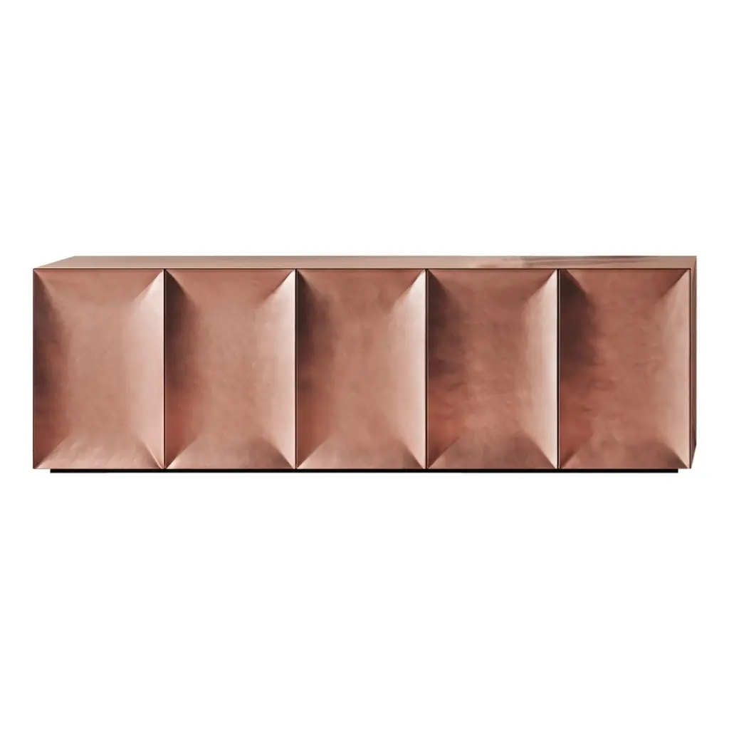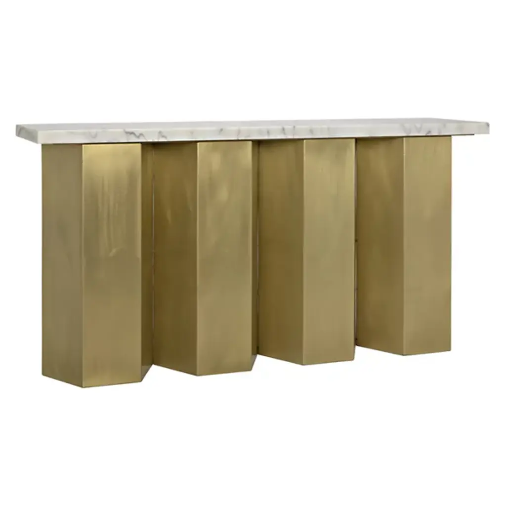 Geode Metal Console by Ginger & JaggerDimensions: D 50 x W 150 x H 80 cm. Materials: Brushed Brass.Finish: Brushed Brass.This product is suitable for custom size. This product is made for living areas and interior spaces only. This product is not specified for bathrooms, spas, or humid environments. Not suitable for exteriors. Available in different finishes. Please contact us.Launched in Europe in 2012, Ginger & Jagger is a product design brand that prides itself on creating handcrafted high-end contemporary products inspired by Nature.Designed and produced in Porto, a land of craftsmen and age-old tradition, Ginger & Jagger’s Earth to Earth collection is an evocative poetic realm, where Nature’s sculptural shapes are made eternal through handcraft, with unique artisanal techniques and an outstanding blend of superb materials such as brass, silver and copper, marble and stone, and wood.The designer's compass is kept by an uncompromising desire for creative innovation balanced with the integrity of the materials, the artisanal techniques employed, and the brand's very own narrative element.The artisanal techniques availed range from brass casting, wood, and marble marquetry, hand-hammered metals, and hand-sculpted marble.Striving towards sustainability. Ginger & Jagger supports organizations worldwide, with contributions indexed to the products crafted every year.