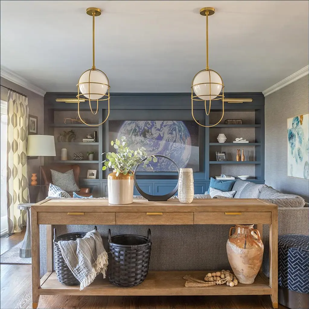 Gibson Rustic Lodge Vintage Brown Oak Brass Rectangular Console Table