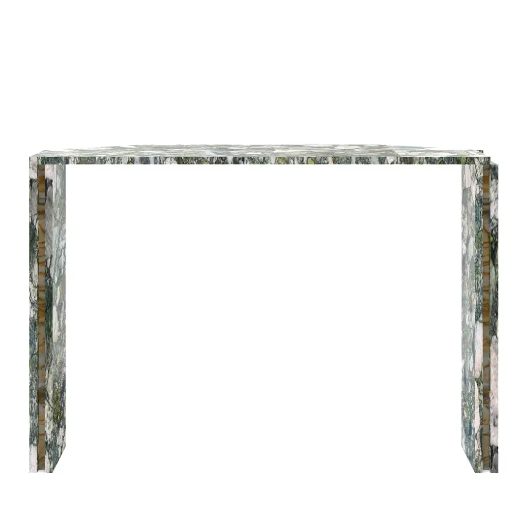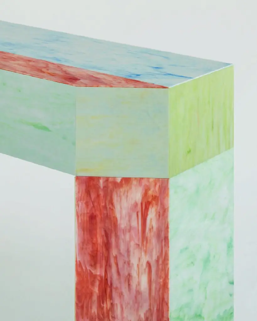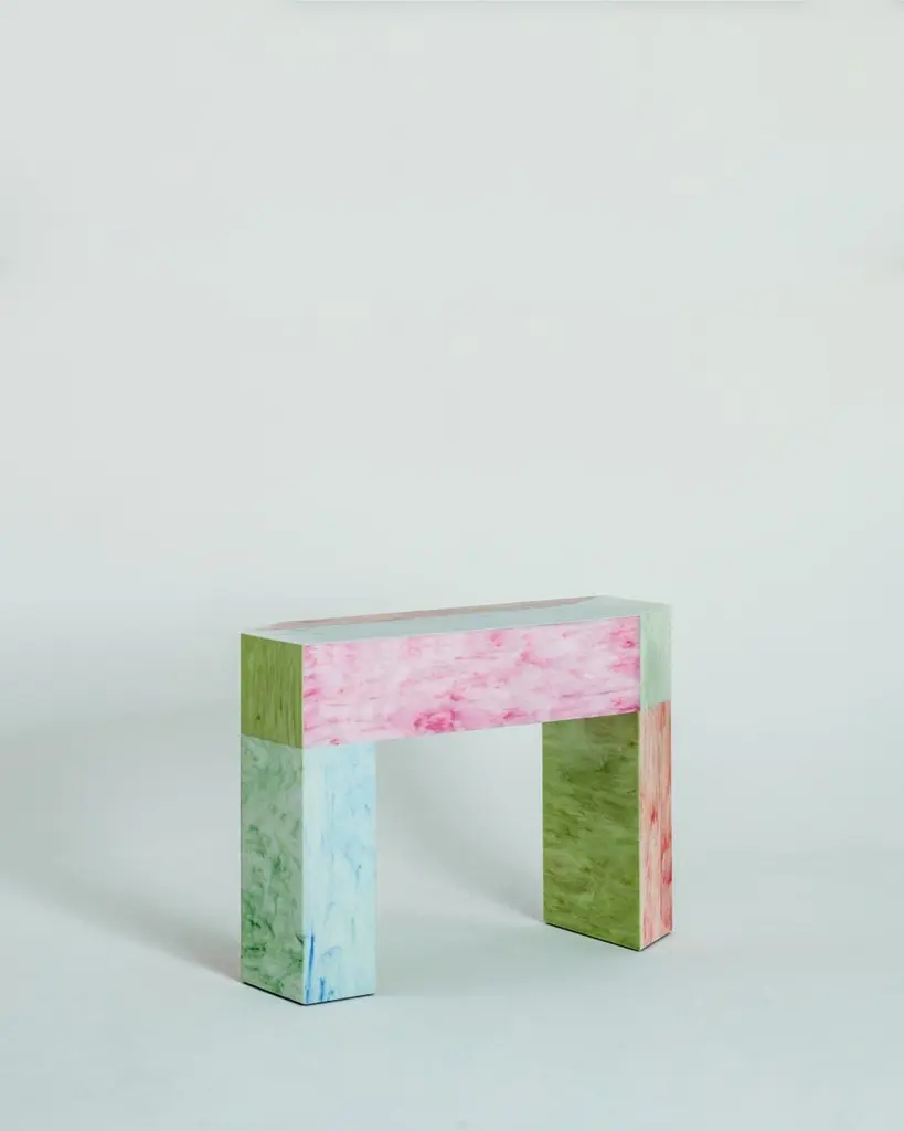 Collection composed by a low table and a console with a wooden structure completely covered by a mosaic of cast glass tiles in various and random colours. The tiles are shaped and positioned so that the surface reproduces the axonometric projection of a parallelepiped element. The pieces are completed by functional invisible drawers with a push-pull opening system.Available in different options, please inquire with us.DIMENSIONS:L 120 - P 44 - H 85