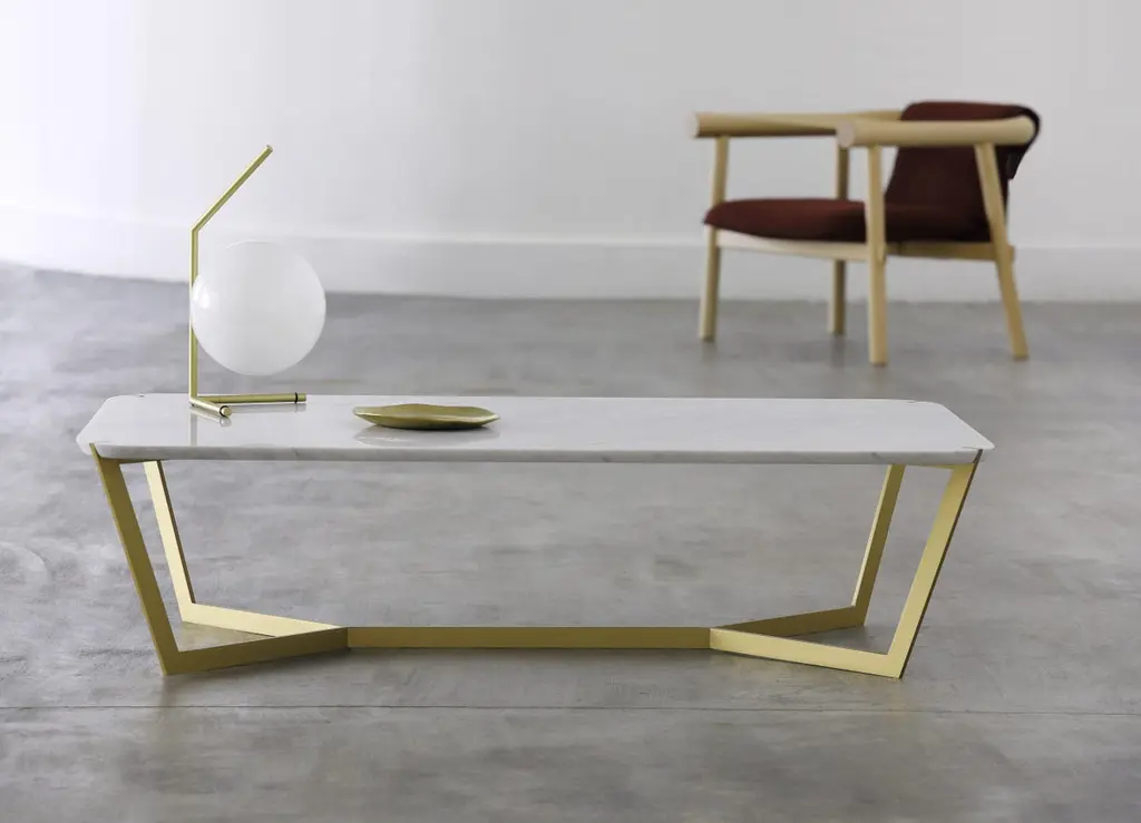 Gold carrara marble star coffee table by Olivier GagnèreMaterials: Carrara marble or black Marquina marble top. Gold lacquered metal base.Technique: Lacquered metal, polished marble. Dimensions: D 70 x W 125 x H35cmAlso available in nero marquina marble, and gold or bronze base.The Star collection by French designer Olivier Gagnère is a line of coffee tables and console tables in the spirit of Decorative Arts, elegant, in gold or bronze lacquered metal with its tops in white Carrara marble or black Marquina marble.COEDITION is a French publisher of high-end contemporary furniture created in 2014. Thanks to the diversity of the languages ??of its international designer's partners, COEDITION is an avant-garde brand, with the concern and the desire for sustainability. They are selected with great care. Among other things, solid woods and veneers are, depending on their origins and terms of supply. Our manufacture is only made in Italy, with the best craftsmen in the profession, committed to quality and the environment.Today 13 great designers are creating exclusive collections for COEDITION: Patricia Urquiola, Patrick Jouin, Luca Nichetto, Rodolfo Dordoni, Shin Azumi ”, Michael Anastassiades, Olivier Gagnère, Dominique Perrault and Gaelle Lauriot Prévost, Marco Zanuso Jr., Arnaud and Aki Cooren, and finally Alain Moatti.Our catalog offers furniture for the home, public places, reception areas, restaurants, hotels. Our raw materials are carefully selected, solid woods and veneers, according to their origins.Olivier Gagnère is a French artist and designer born in 1952. In the 1980s, he met designer Ettore Sottsass and worked with the Memphis Group in Milan. He then worked with Murano glassmakers and Master Craftsmen from all over the world for the realization of his first creations, in particular glass and porcelain objects. He collaborates with major French brands as well as with galleries such as Marc Lamouric, Néotu, Kréo, or even Maeght where his works are exhibited. From 1992, Olivier Gagnère designed, among other things, a porcelain collection for the great Bernardaud house, which he would later take care of fitting out the rue Royale tea room in Paris. Then in 1994, he decorated the Café Marly at the Louvre Museum by developing all the furniture and lighting. His successes followed one another with the Cristalleries Saint Louis, Artelano, Véronèse. Between renovation, planning, ceramist, cabinetmaker, interior architect, decorator, and designer, Olivier Gagnère is a complete artist with an eclectic profile who draws his inspiration from the decorative arts mixing tradition and modernism.