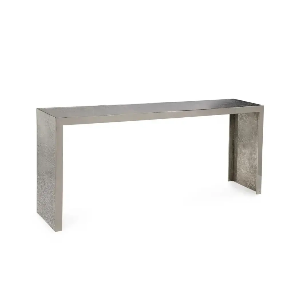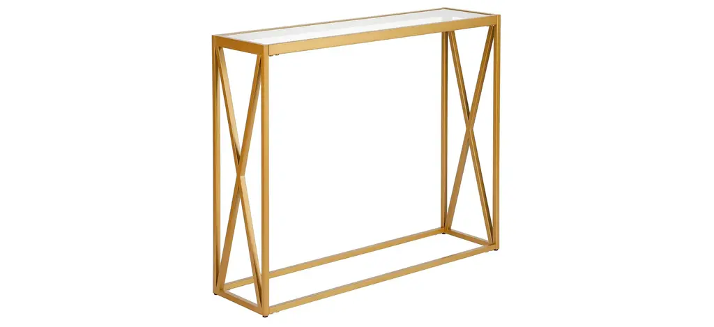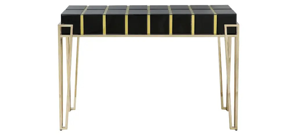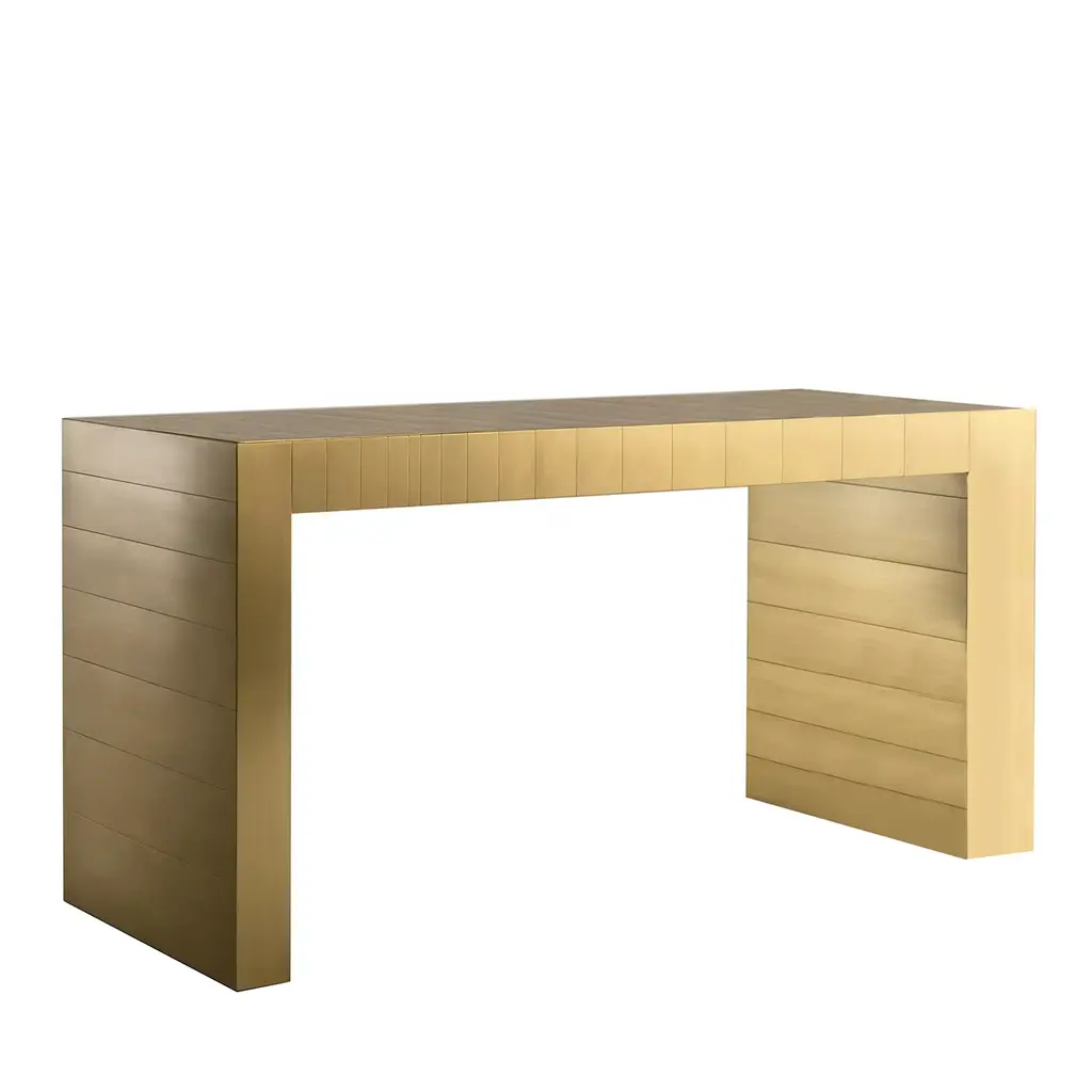 Meet the Console Table Collada by Richmond Interiors – a vision of contemporary elegance. Its sleek, angular shape and brushed gold finish make it a fantastic addition to modern decor. Place it in an entryway, living room, or hallway as both a functional surface and a stylish focal point. The faceted golden details on the table's facade add a touch of glamour, making it an ideal choice for those seeking to infuse their space with sophistication and luxury.