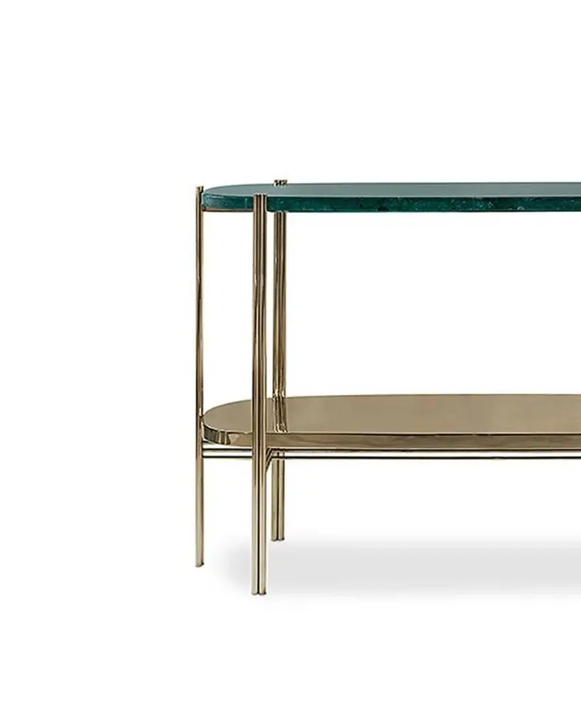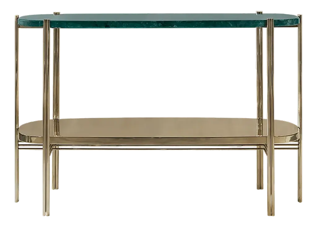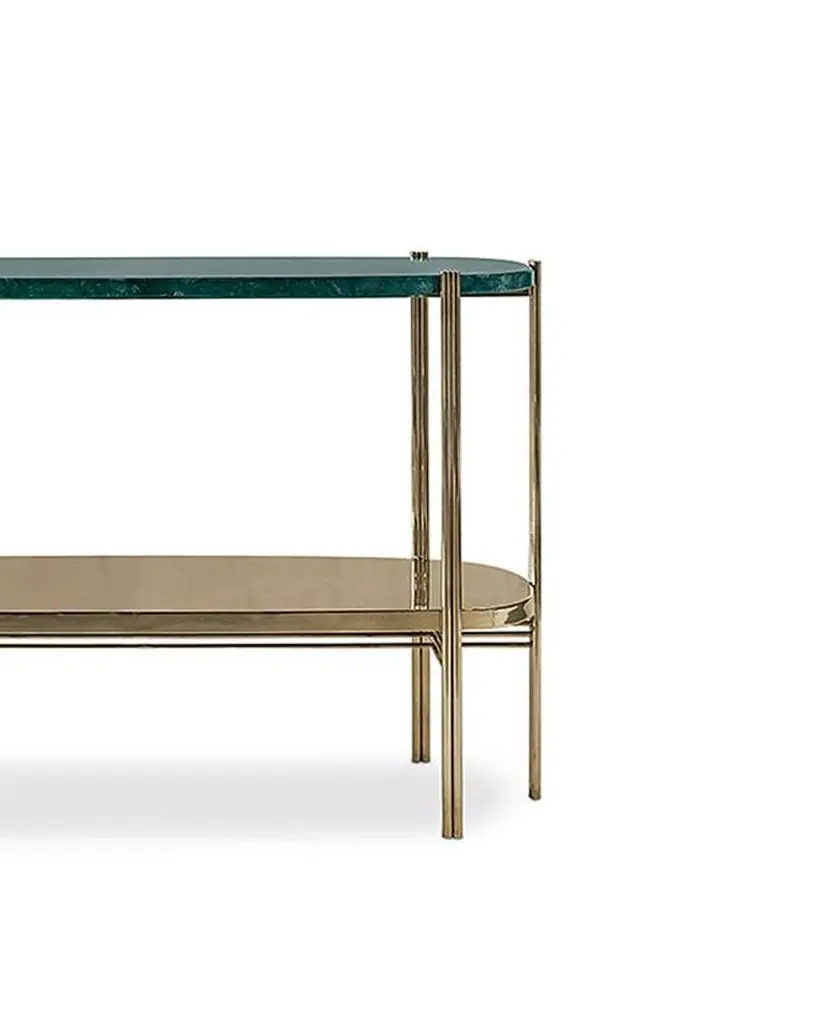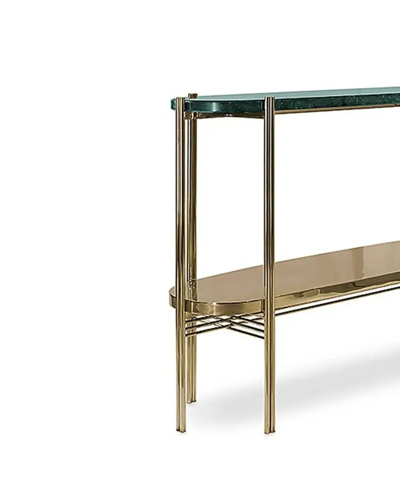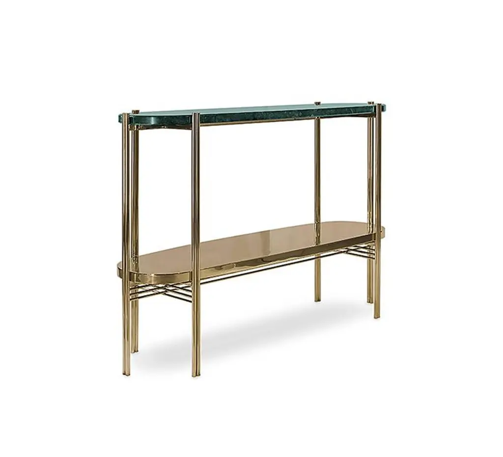 Green Marble Console With Polished Brass Structure