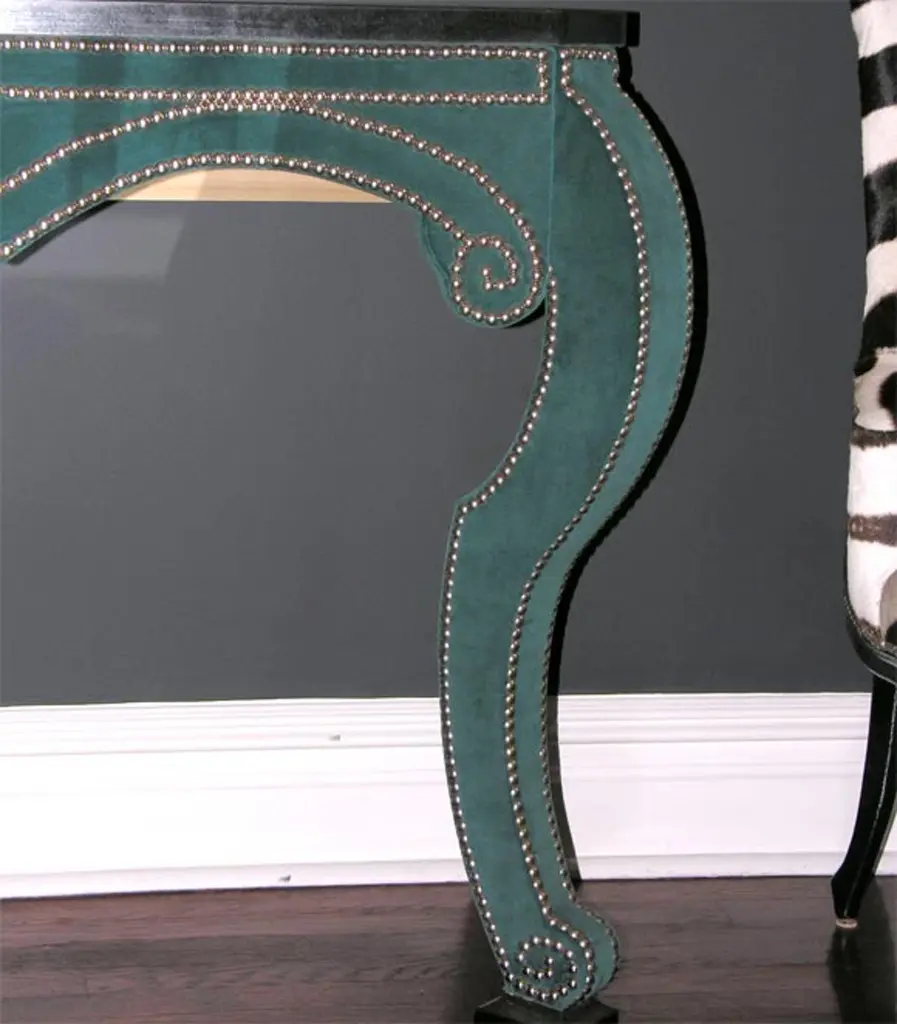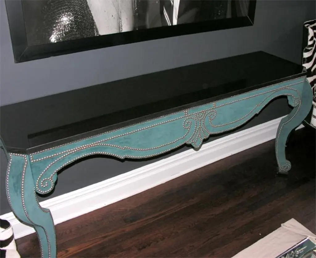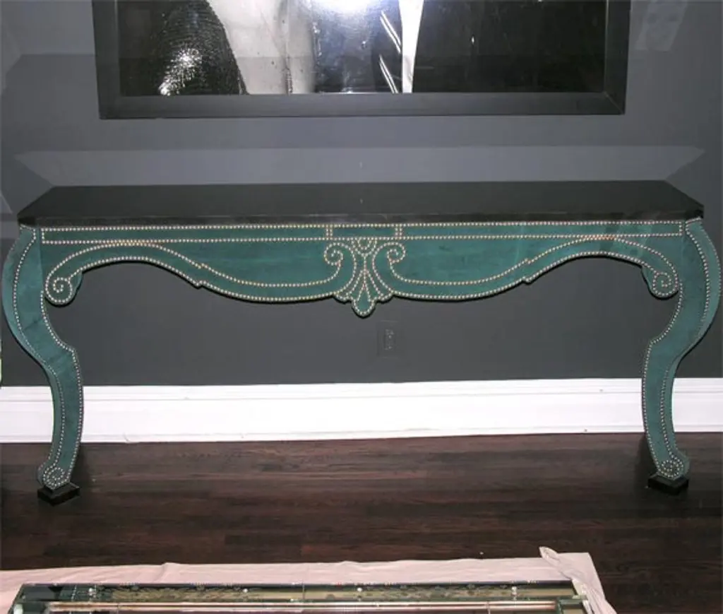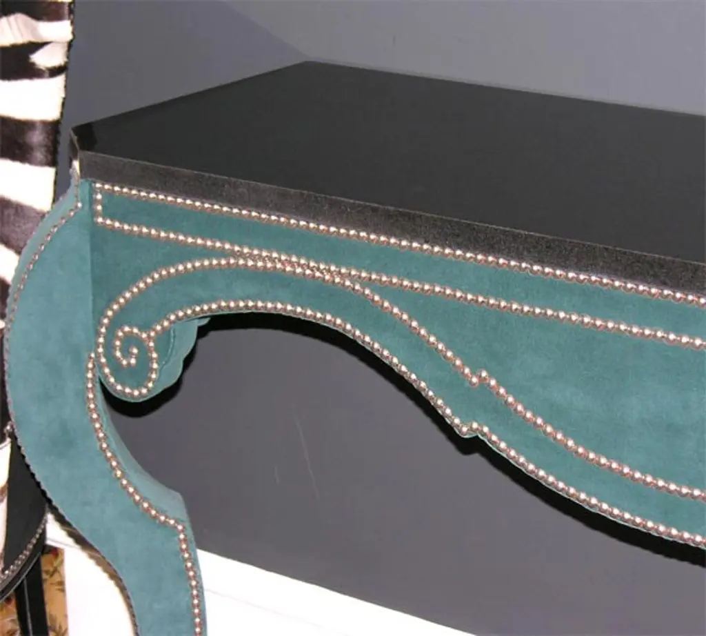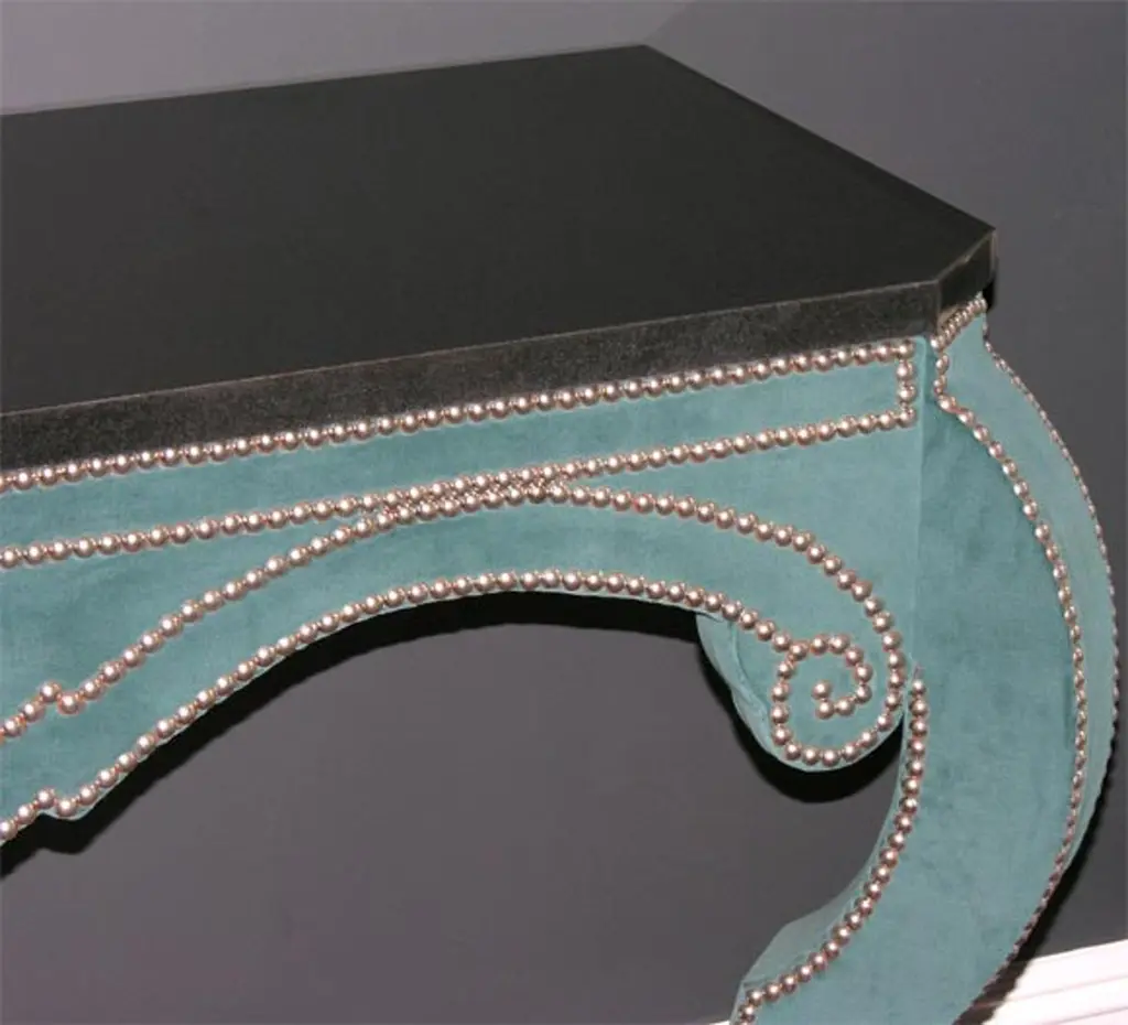 Green Teal Velvet Wall Mount Console With Black Granite Top