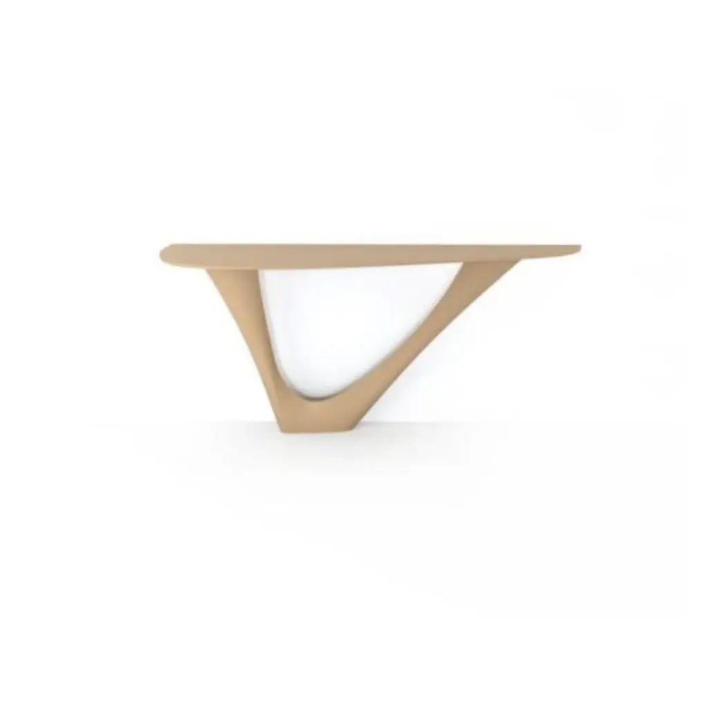 Grey beige G-console steel base with steel top mono by ZietaDimensions: D 43 x W 159 x H 75 cm Material: Carbon steel.Also available in different colors and dimensions.G-Console is another bionic object in our collection. Created for smaller spaces, it gives another possibility in interior planning and at the same time preserves the unique shape of the original G-Table. Both objects were made for enthusiasts of bionic forms. Made with FiDU technology, it reminds of vines or tree roots. Nature symbolizes a constant changeability and harmony that comes out of it. A diverse structure refers to both natural forms and processes. G-Console comes in two versions – Mono and Duo.About Zieta: Zietas main goal is to deliver uniqueness and customization in design and construction while keeping the production, transport, and warehousing innovatively efficient.This is how they imagine the future world: Light, durable structures of customized applications produced on demand out of one-of-a-kind parts, yet efficiently.They use a computer-controlled production process. Customized pattern, customized form, customized function, one-of-a-kind product, and outstanding precision are what they deliver.You will find all of this philosophy reflected in the products. They research, they discover new possibilities, they play with forms and they deliver a beautiful, innovative, surprising outcome to people who love the design and who care about design development.They believe their work is a valuable contribution to the world of design not only by the unique beauty of the forms but most of all by opening ultra-innovative opportunities of forming and new paths for the world of the future.
