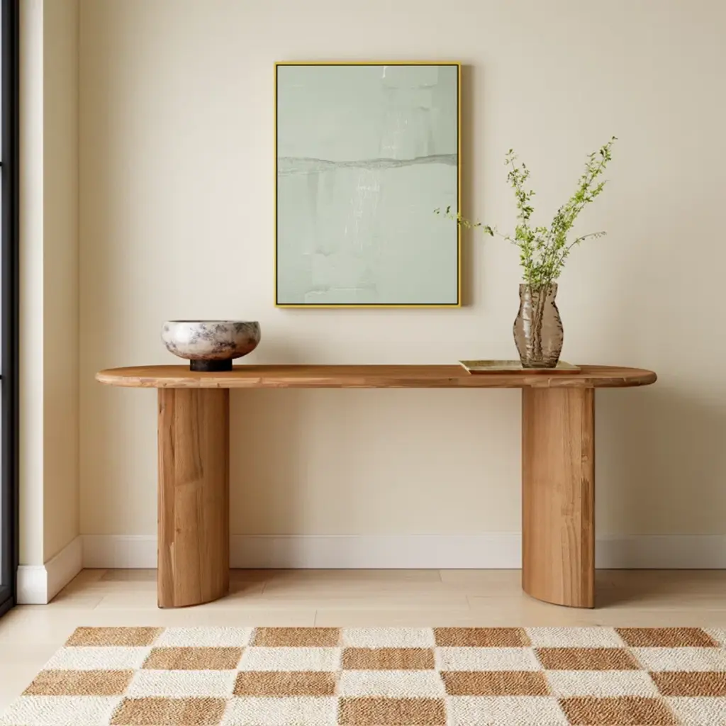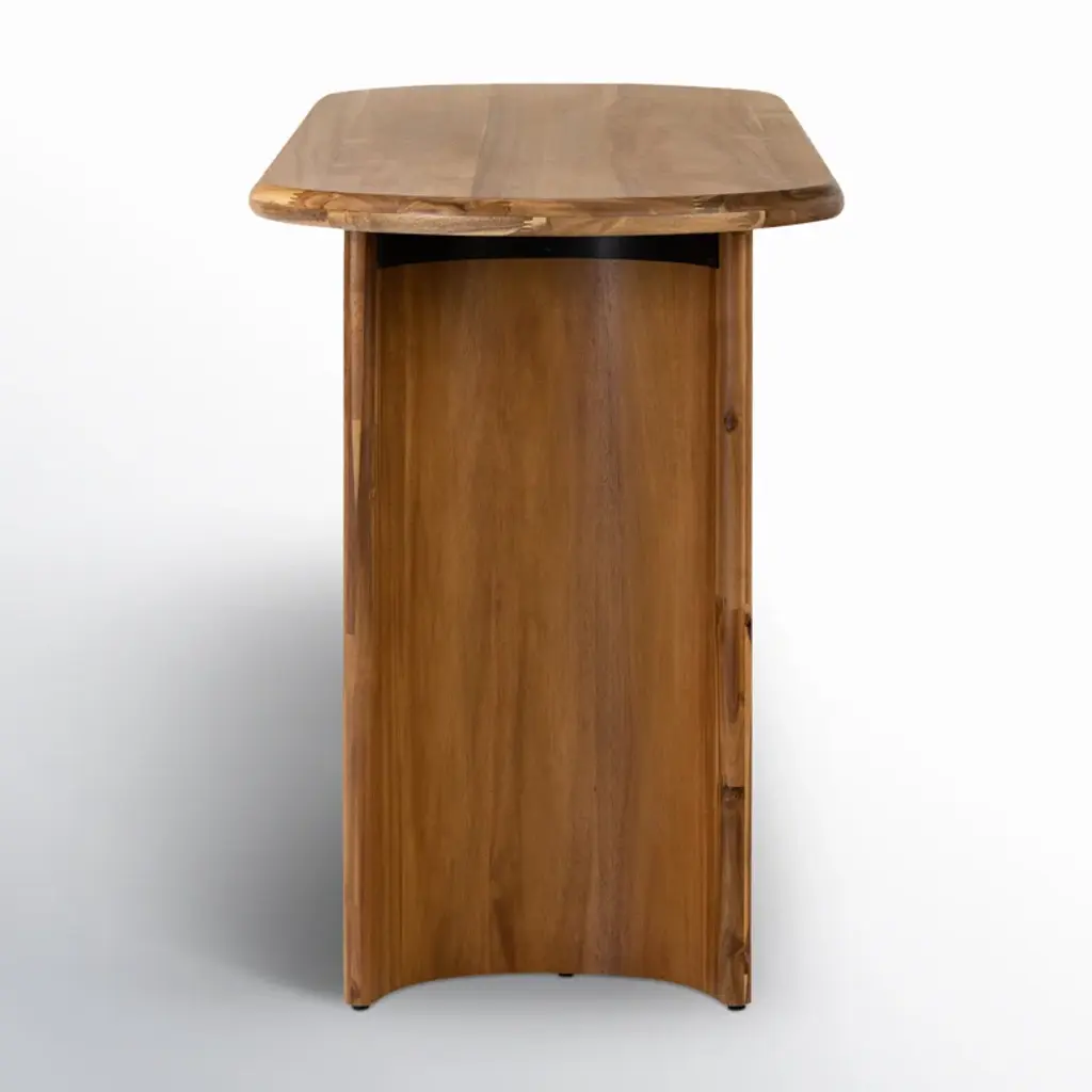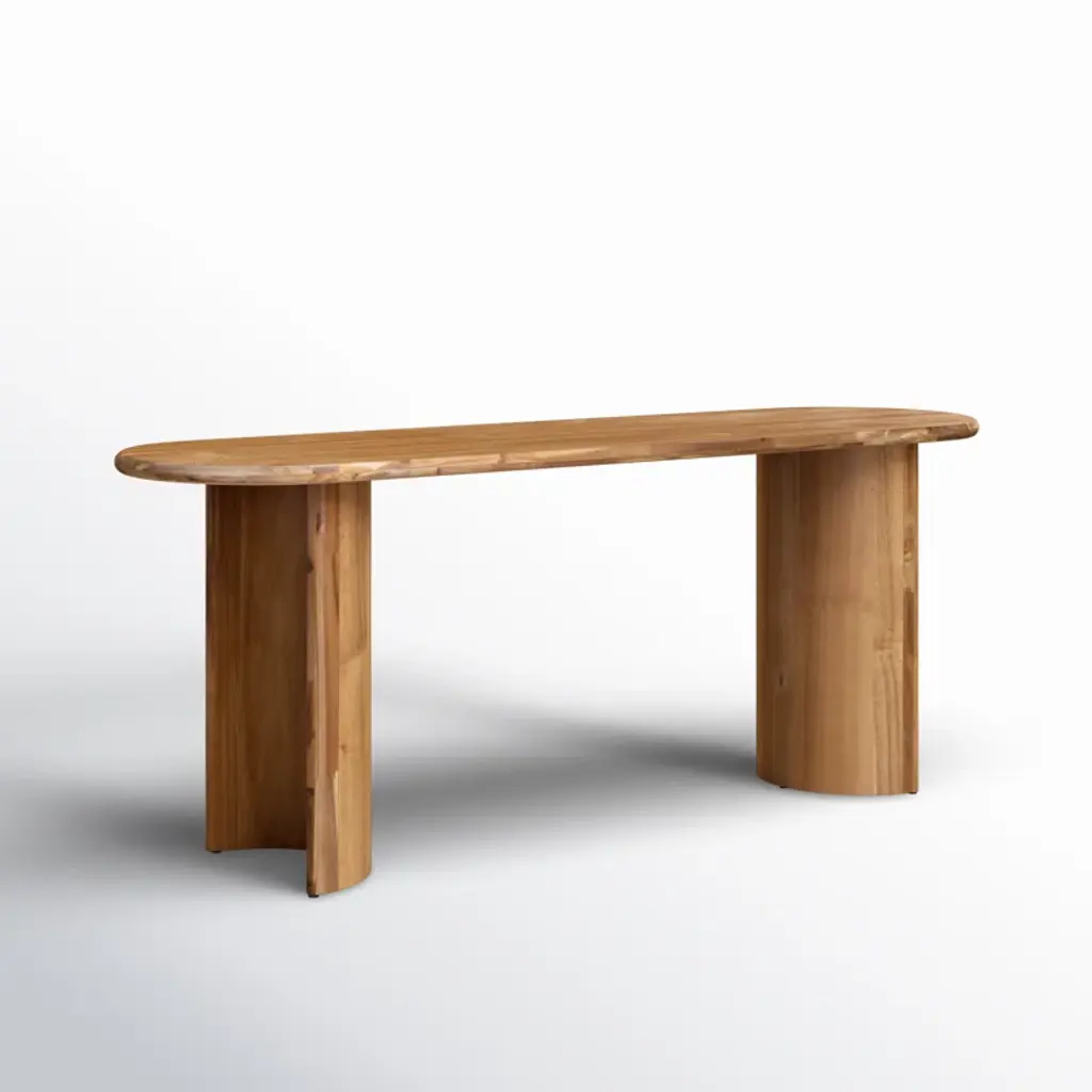 Redefine your space with this solid wood console table. It features two half-moon legs and an oval table top, making it the perfect blend of classic and contemporary. Warm brown acacia finish brings a natural warmth to your entryway or living room. And its practical design lets you display a variety of items on top, from a fresh flower arrangement to a group of family photos.