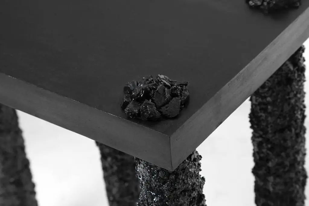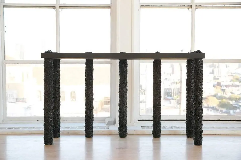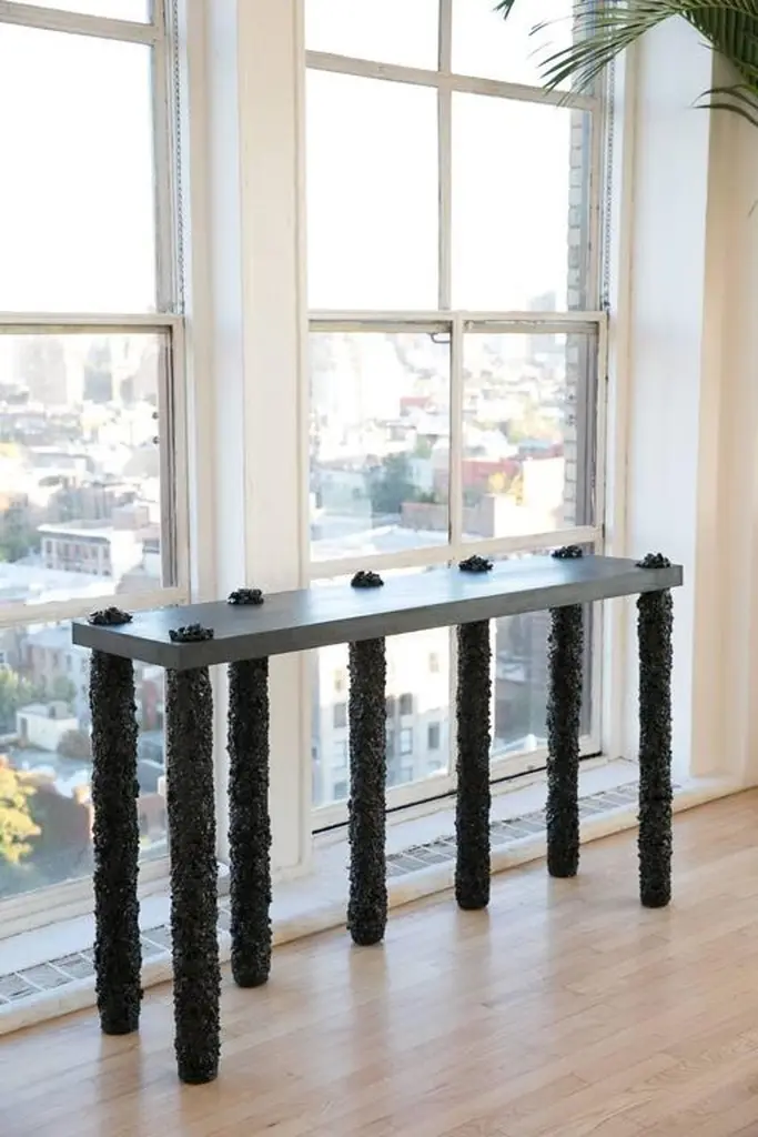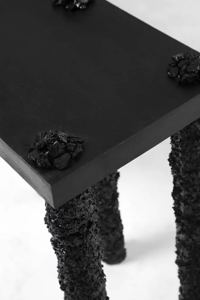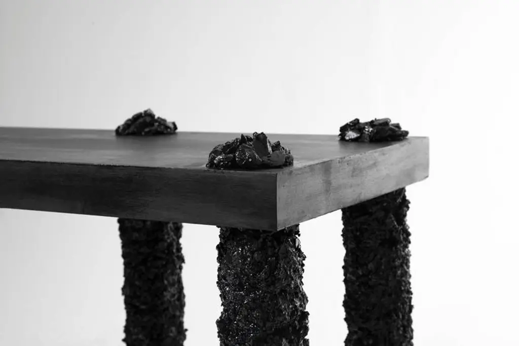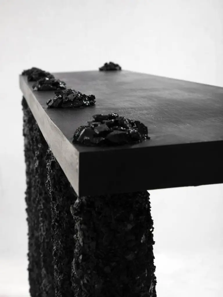 Hand Made Console Of Black Tourmaline Of India And Black Cement, By Samuel Amoia