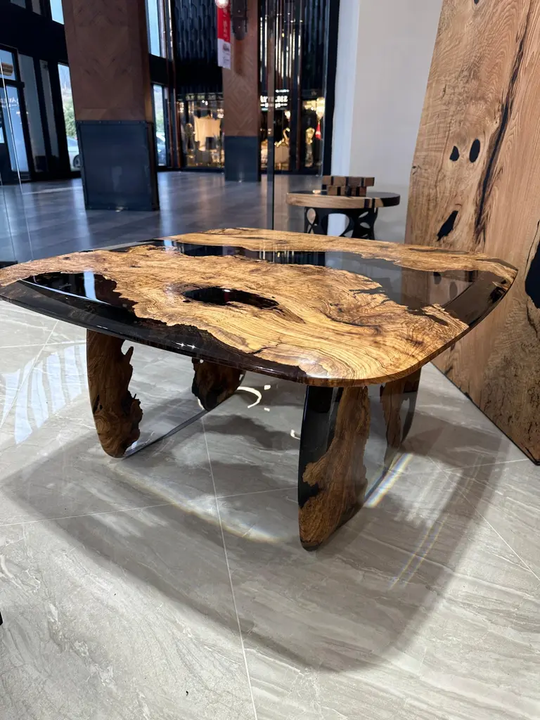 Waterfall Ash Wood Epoxy Coffee TablePresenting our Epoxy Waterfall Table – a true sample of craftsmanship and elegance. This exceptional piece of furniture is designed to be more than just a coffee table; it's a statement of refined taste and contemporary style.With waterfall console table's modern design and appeal, it's the perfect piece for your home, combining functionality with an aesthetic.This console table is made of walnut wood. And it can be customized according to your taste in terms of kind of wood, epoxy colour, finishes etc..
