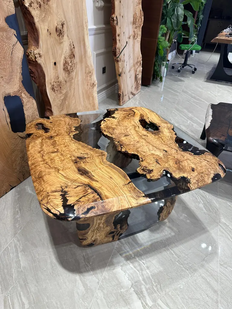Handmade Modern Clear Epoxy Resin Coffee Table
