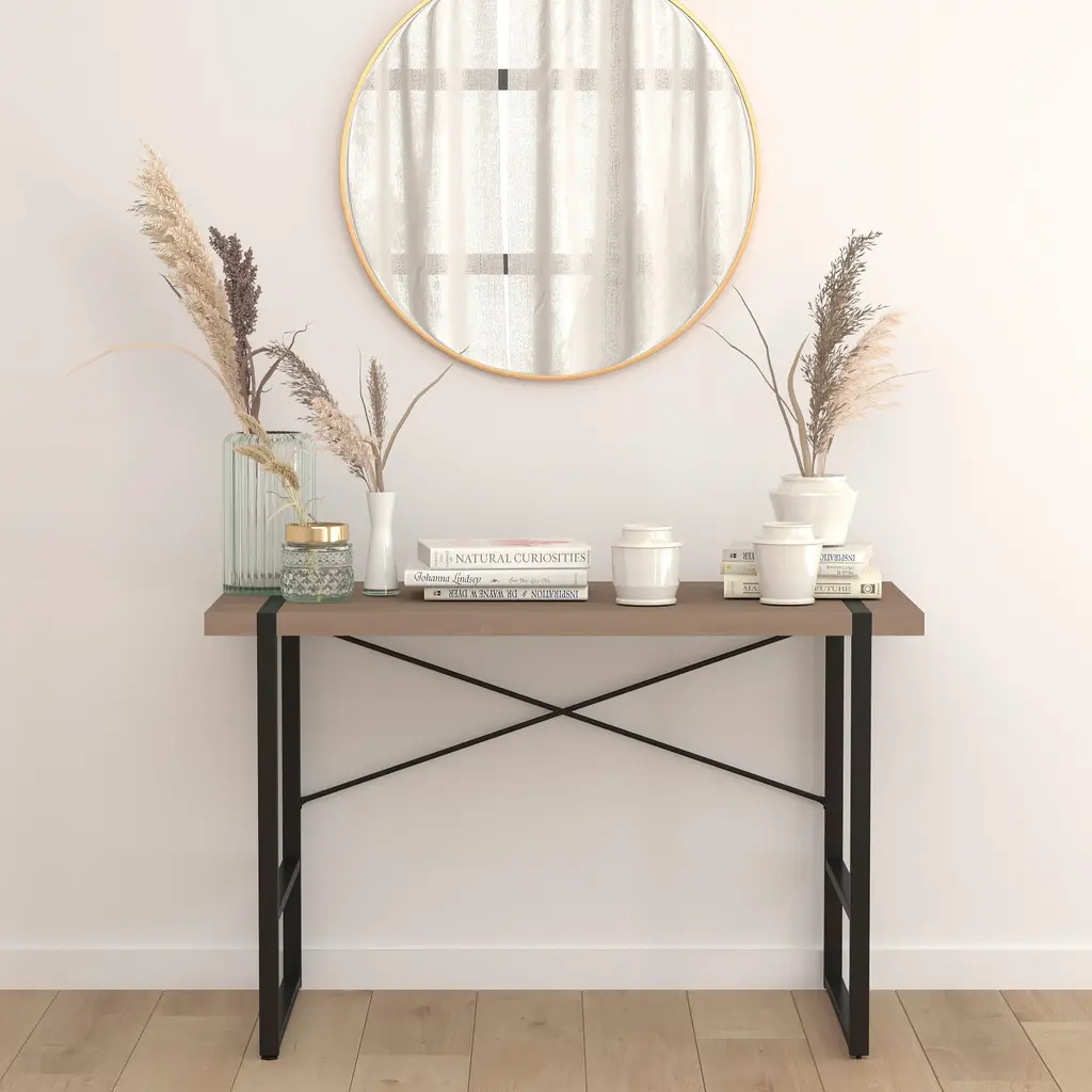 Hanover Park Wood Grain Console Table With Cross Brace Backing