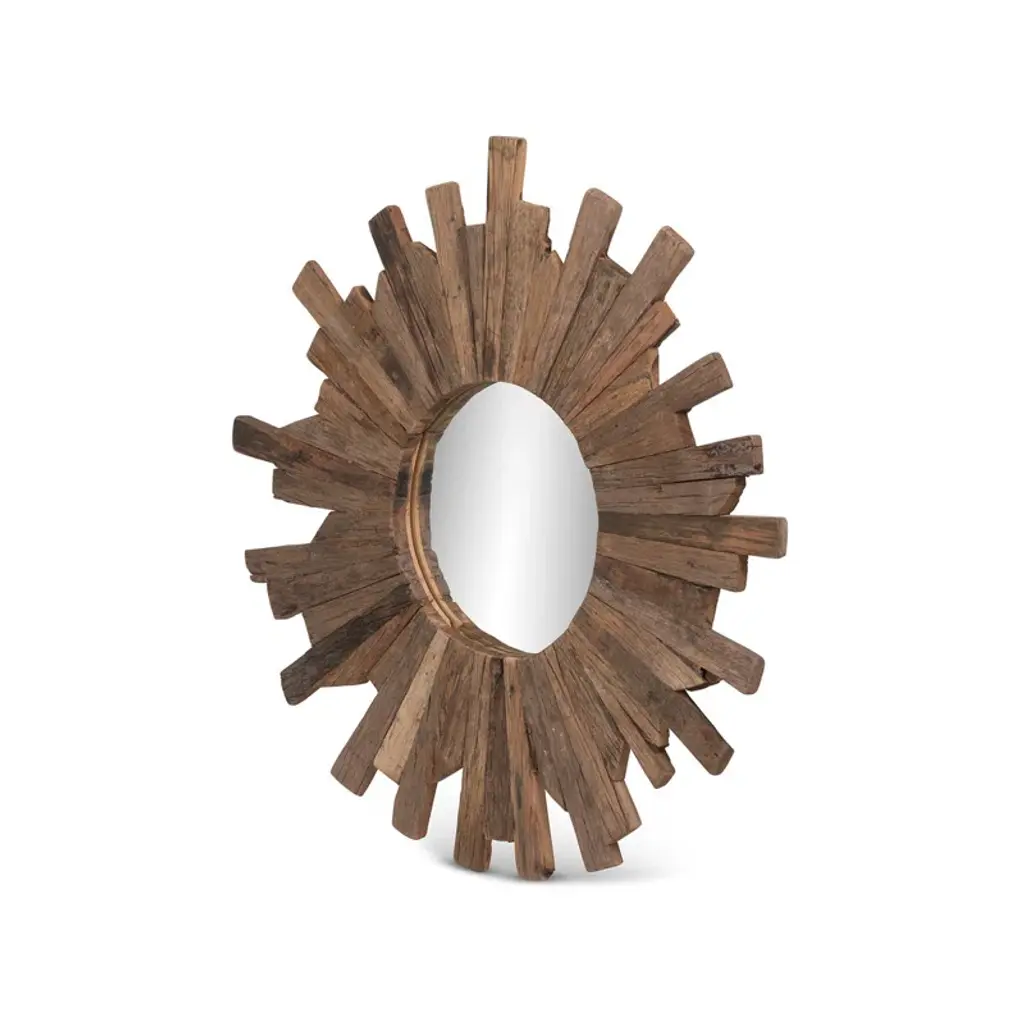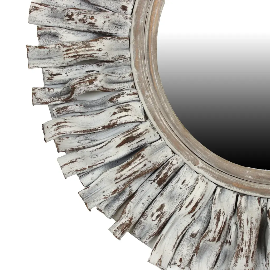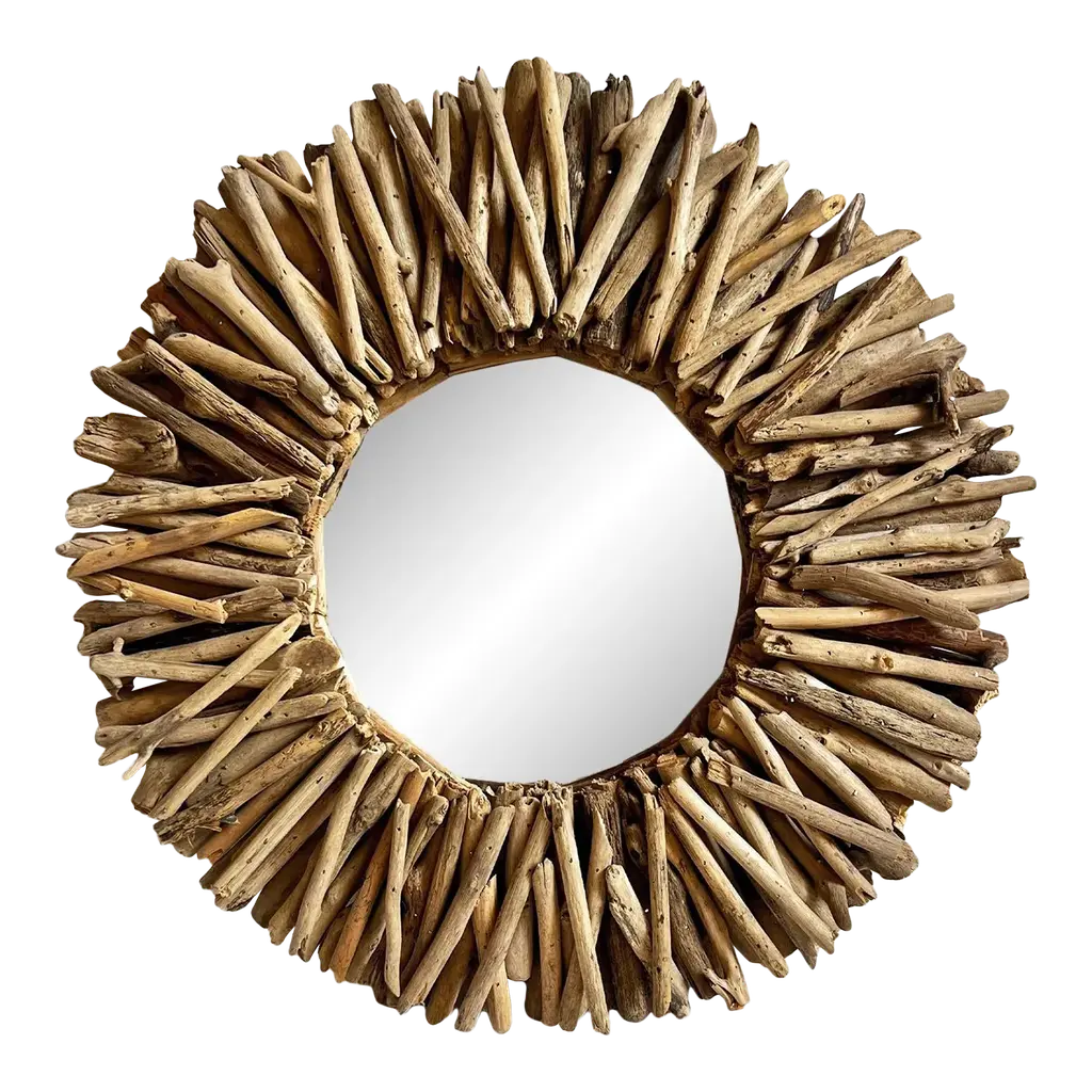 This round rattan starburst mirror is designed to make a bold statement. Constructed with a sustainable rattan frame and hanging root detail, the handpainted brown or whitewash finish highlights the raw beauty of the organic root. Hang it above a living room mantle, sideboard, console table, or dresser to bring drama and depth to your living space.