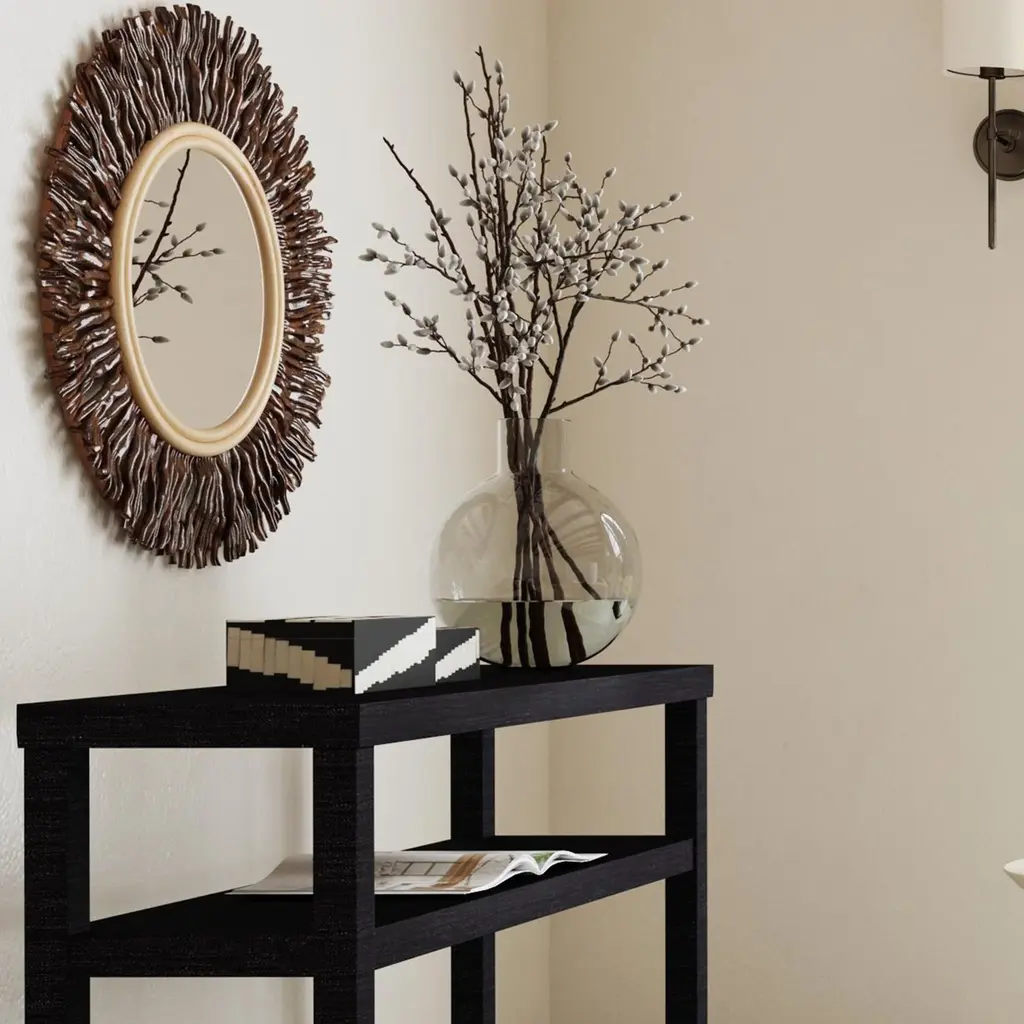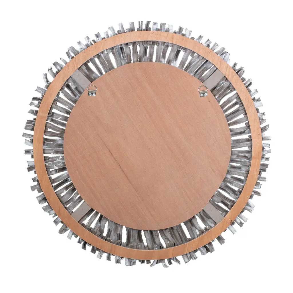 This round rattan starburst mirror is designed to make a bold statement. Constructed with a sustainable rattan frame and hanging root detail, the handpainted brown or whitewash finish highlights the raw beauty of the organic root. Hang it above a living room mantle, sideboard, console table, or dresser to bring drama and depth to your living space.
