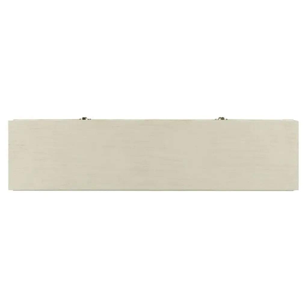 A rectangular top veneered in figured eucalyptus is placed over four individual drawers that are mounted with brushed nickel ring pulls.