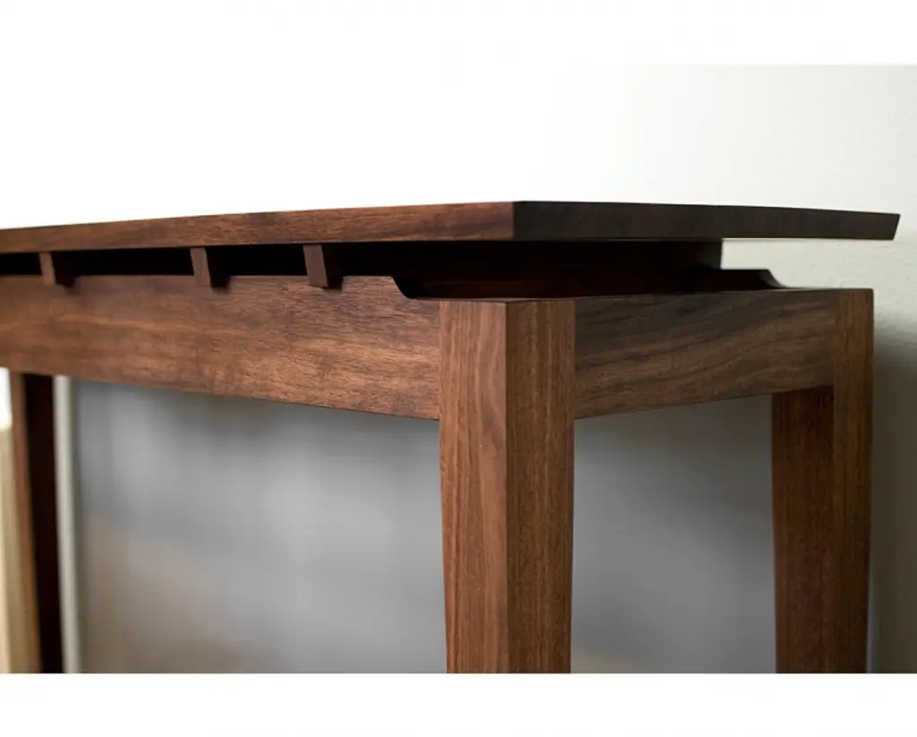 The Hochberg Entry Table is made of wood of your choice: Cherry, Maple, Eastern Walnut or Oregon White Oak. Dimensions: 27"d x 50"w x 32"h