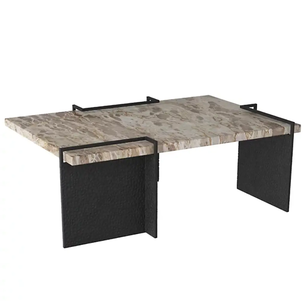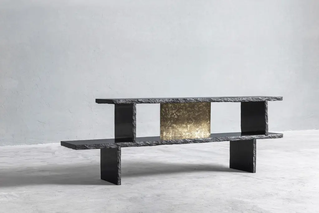 Horizontal Black Slate Console With Gold Brass Center Back By Frederic Saulou