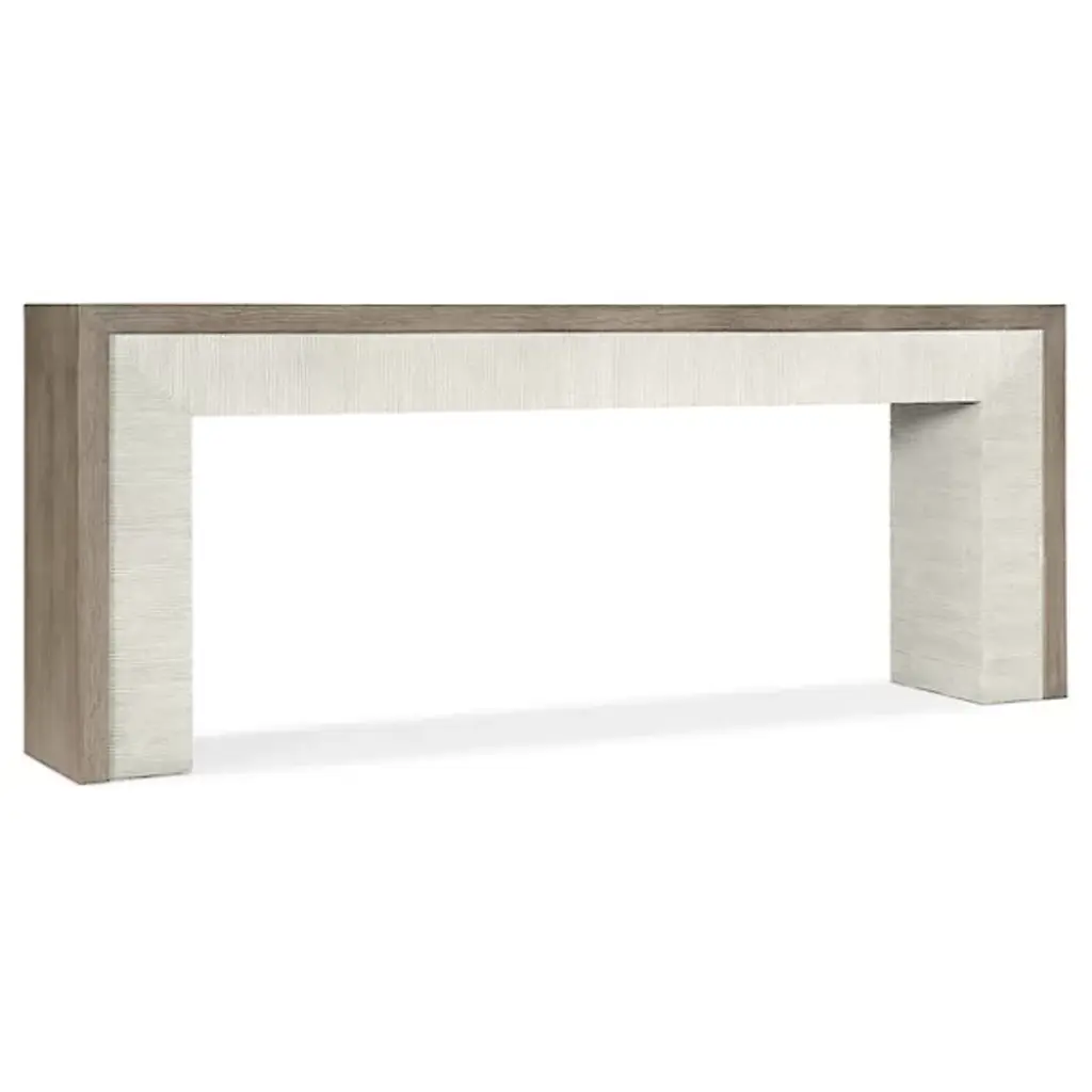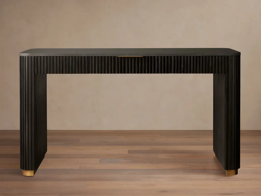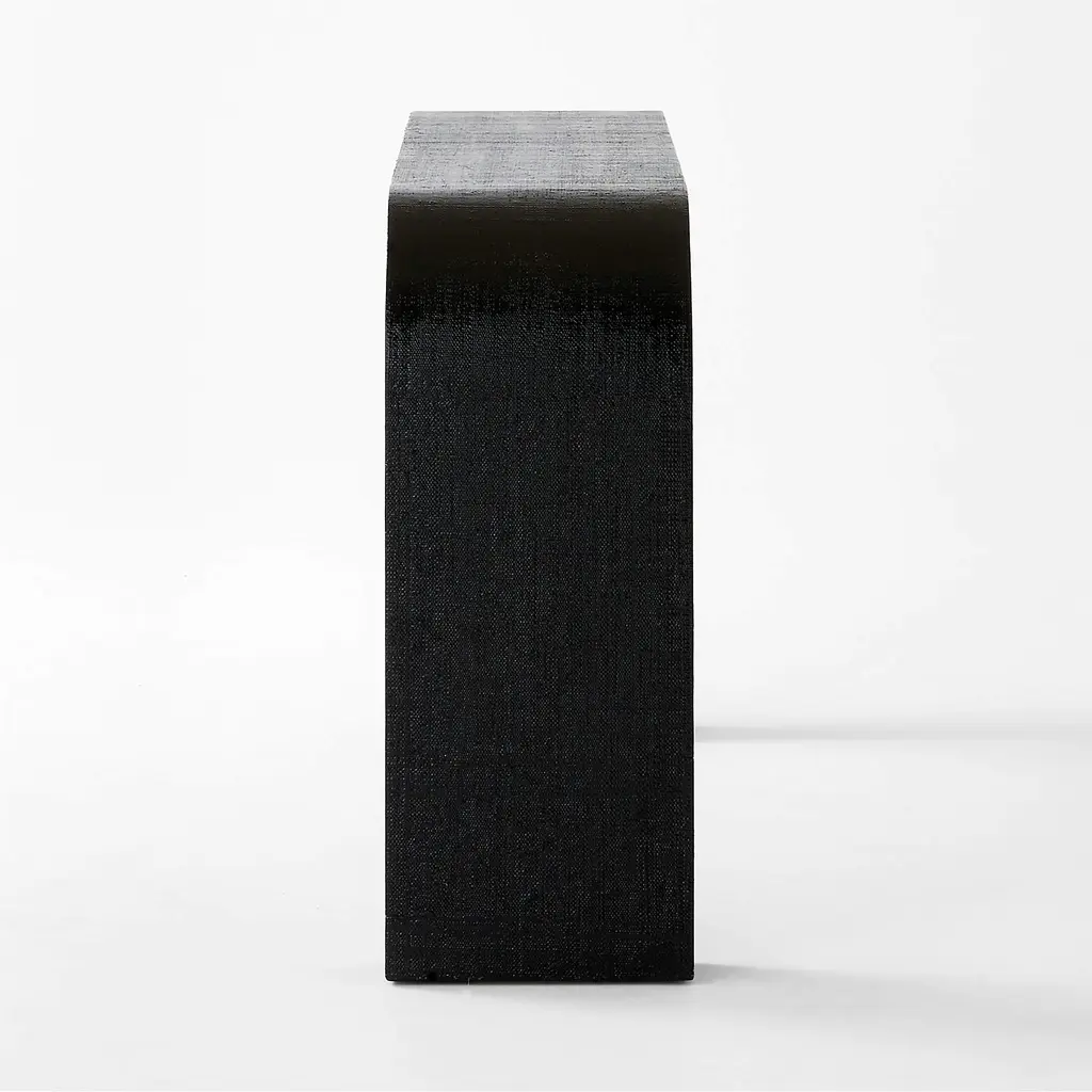 Inspired by 1970s modern silhouettes and unique materials, VUUE's design turns a simple U-shaped form into a statement console table with extra-rich texture. Raffia wraps the piece, finished in hi-gloss black. Mixes effortlessly with any modern living situation. Learn more about VUUE on our blog. CB2 exclusive.