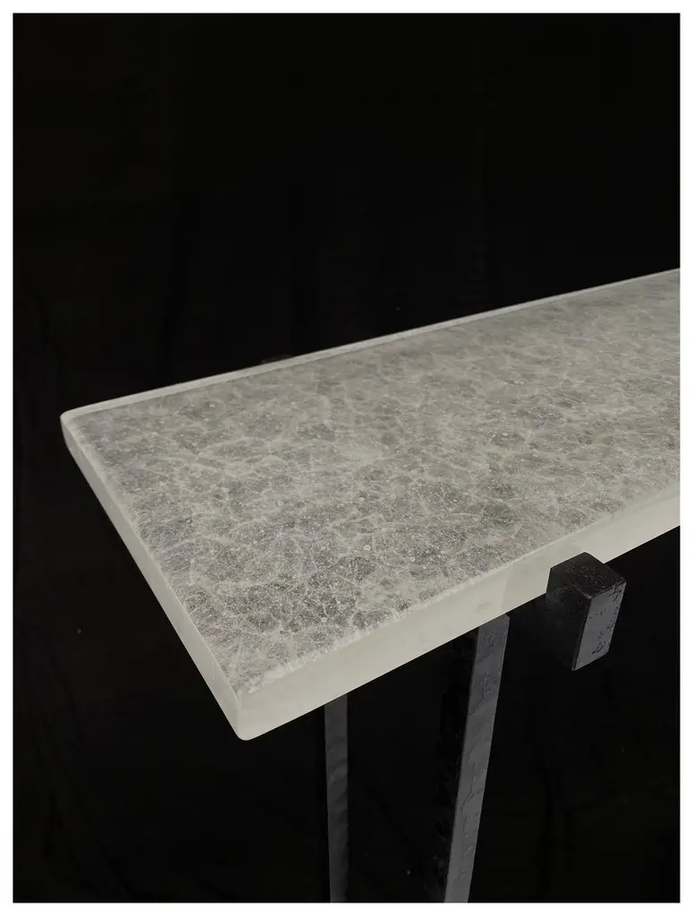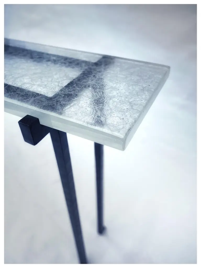 Irma console, signed by Stefan LeoForged iron, Pâte de verre glassMeasures: 150 x 32 x 90 cmAtelier Stefan Leo has a remarkable reputation thanks to its unique furniture designs created with the finest craftsmanship, proving how well contemporary design and traditional arts and crafts can be merged.Tables, sideboards, lamps, cabinets, every single luxury furniture piece is precious and combines a rare balance between know-how, ancient skills and extraordinary materials. Each piece is, therefore, special in its own particular way, filled with details and singularities.The masterpieces manufactured by Atelier Stefan Leo are born from the creativity of the designers Stefan Leo and Hans-J and the talented hands of master artisans. Iron, brass, steel, straw, glass, among several other natural or handcrafted materials are shaped according to the artist’s view.Their work is showcased in several notorious art galleries worldwide such as Galerie Philia and is coveted by the most knowledgeable collectors. Their furniture designs are, undoubtfully, treasures which respect and value equally heritage and innovation.Their pieces reflect the love for timeless aesthetics and the dedicated approach which always tries to break boundaries when merging the outstanding skills of craftsmen and contemporary design.Atelier Stefan Leo has been building up a reputation for its unique interior objects.Whether a table, a sideboard or a lamp, the diversity of their craftsmanship, the knowledge of rare skills and the vast variety of materials being used make each piece something very special.The objects of Atelier Stefan Leo and their designers Stefan Leo and Hans-J. Pahl reflect the love for timeless lines and the playful approach to accept no limitations when merging the particular skills of its highly passionate team of craftsmen and -woman.Their work is shown in galleries worldwide as well being highly valued by project partners for creating bespoken objects that meet their specifications.