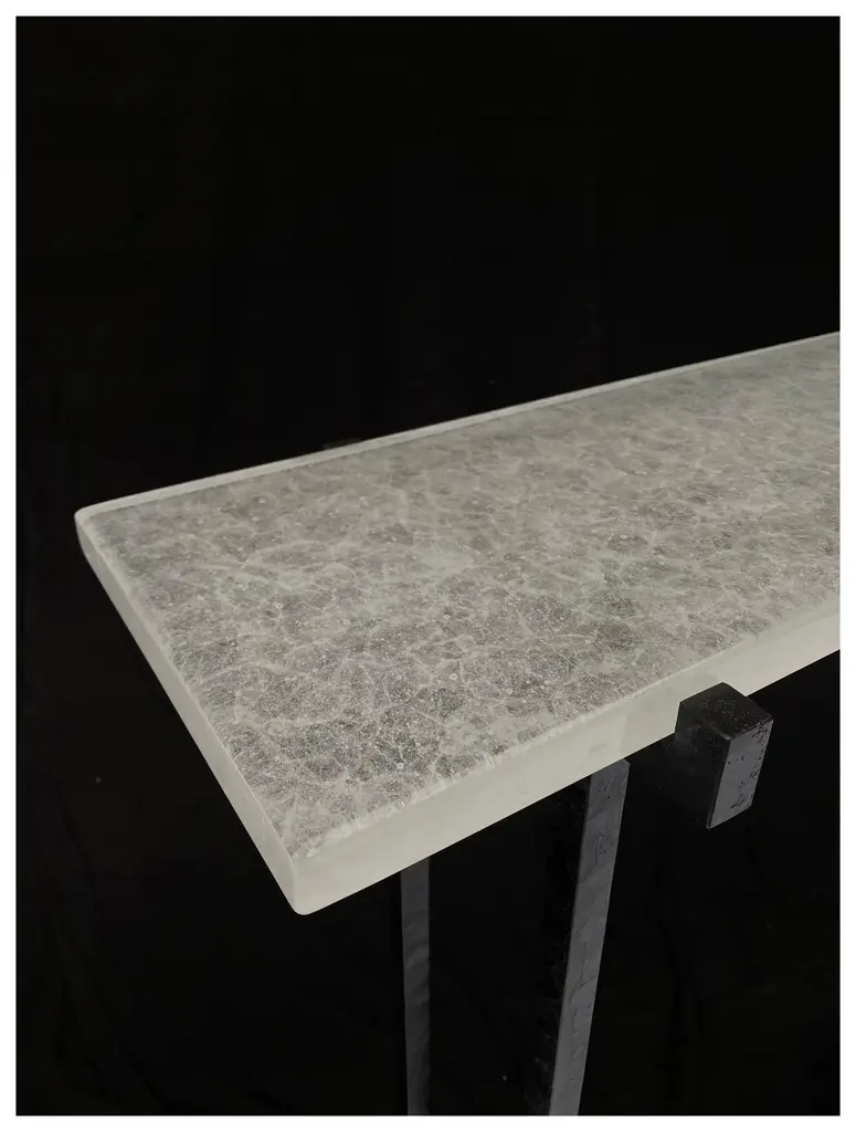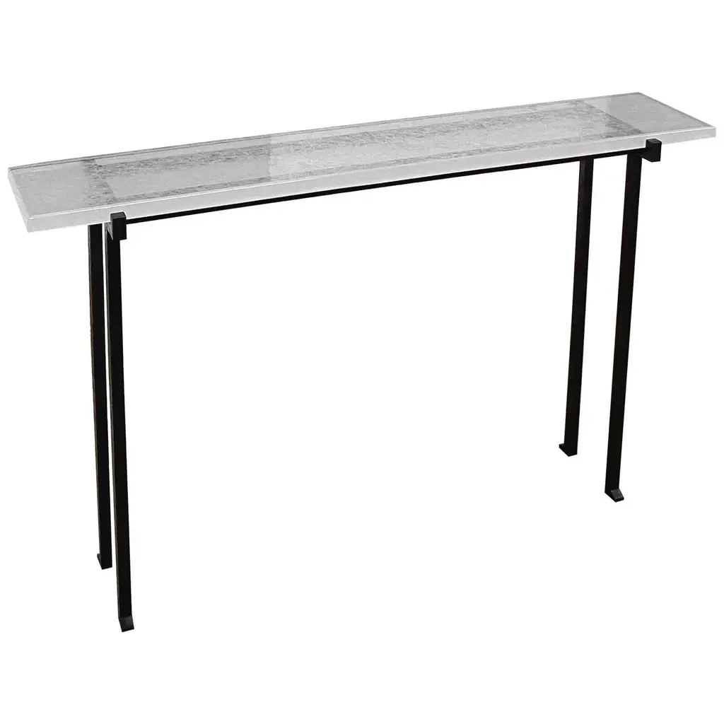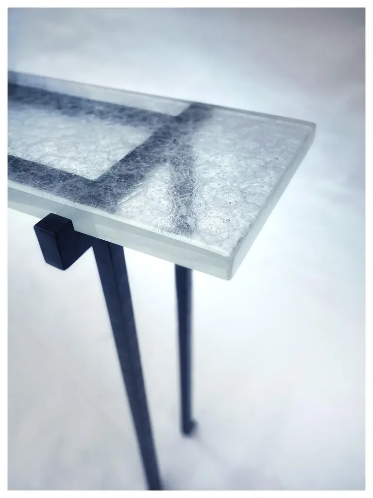 Irma console, signed by Stefan Leo Forged iron, Pâte de verre glass Measures: 150 x 32 x 90 cm Atelier Stefan Leo has a remarkable reputation thanks to its unique furniture designs created with the finest craftsmanship, proving how well contemporary design and traditional arts and crafts can be merged. Tables, sideboards, lamps, cabinets, every single luxury furniture piece is precious and combines a rare balance between know-how, ancient skills and extraordinary materials. Each piece is, therefore, special in its own particular way, filled with details and singularities. This piece is attributed to the mentioned designer/maker. It has no attribution mark and no official proof of authenticity, however it is well documented in design history. I take full responsibility for any authenticity issues arising from misattribution