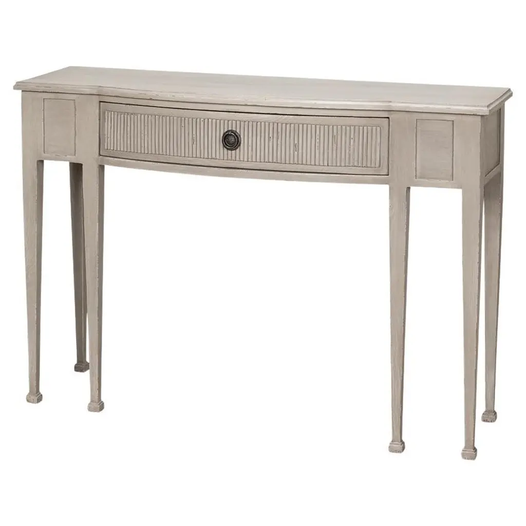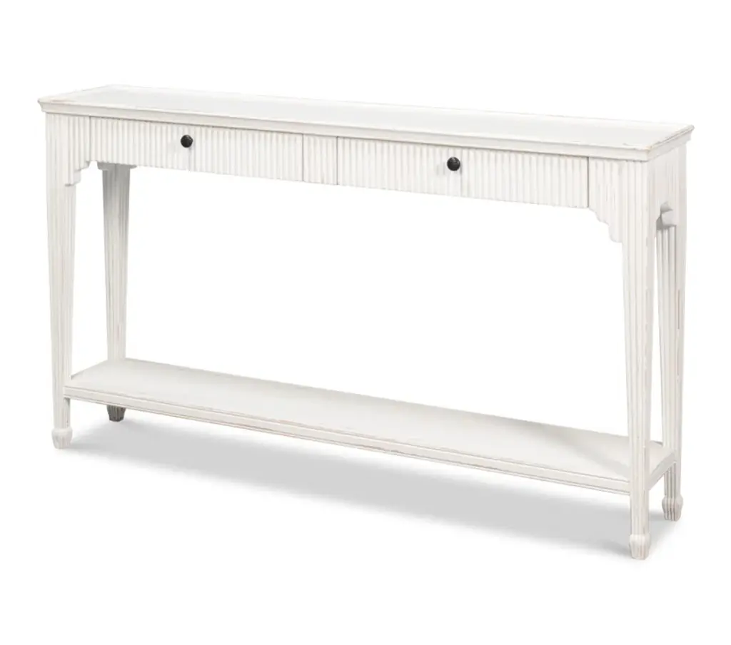 Ideal in a living room or entry hall, this console table combines a straightforward Craftsman-style silhouette dressed up with a fluted apron for a designer look.