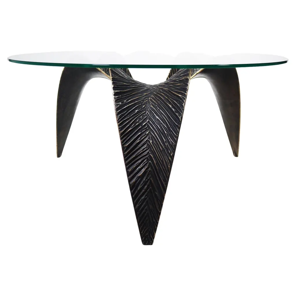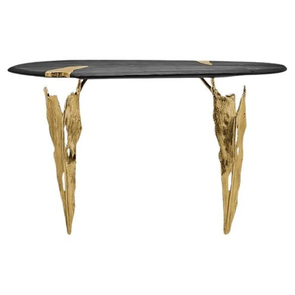 The EXO series is an exploration of nature's growth patterns on design materials; to understand the structure of exoskeleton. The project was conceived from a culmination from James de Wulf's 20 years of concrete knowledge; from the gravity joints to the seamless finish. The beauty of Bronze, ductile and resistant to corrosion, married with the strength, porosity, and density of concrete, create the perfect union. Each material benefits from the other's properties. With the union of these two materials in this patented process, tables are stronger, thinner, and more unique.The console table weighs 200 lbs. Tables are sealed with a unique finishing wax and will develop a gradual patina adding to the beauty of the material’s character over time.
