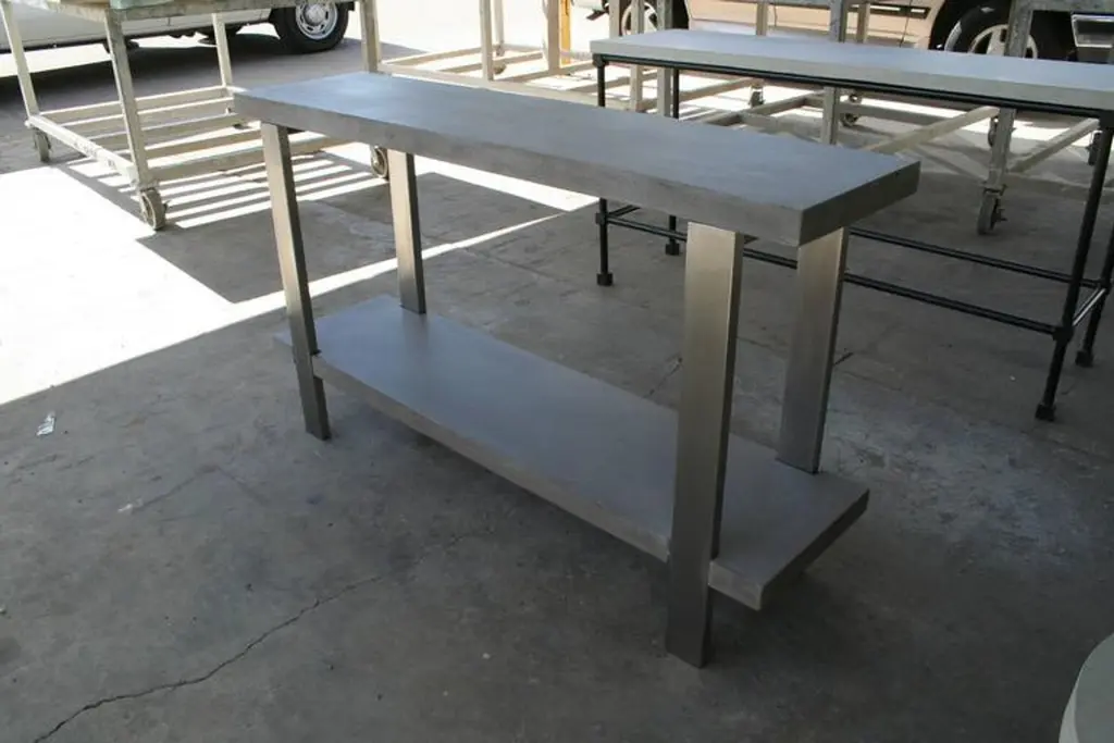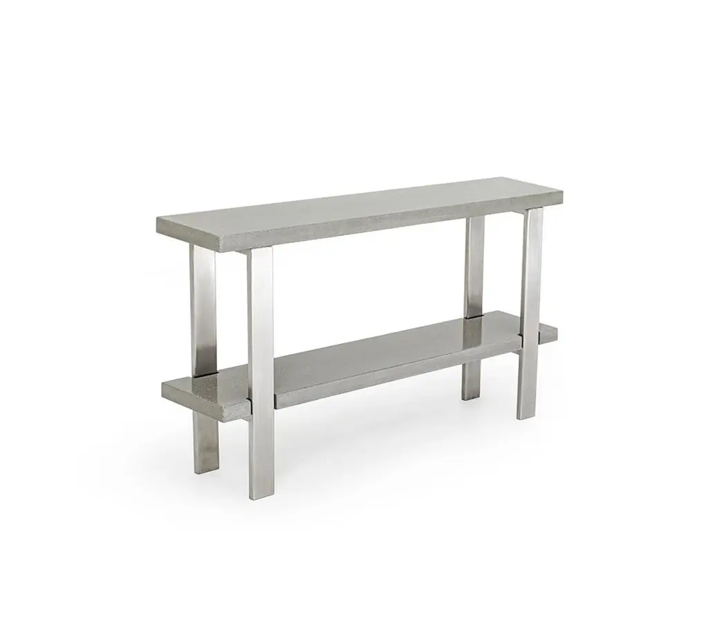 James De Wulf Industrial Console Table, Concrete And Brushed Stainless Steel