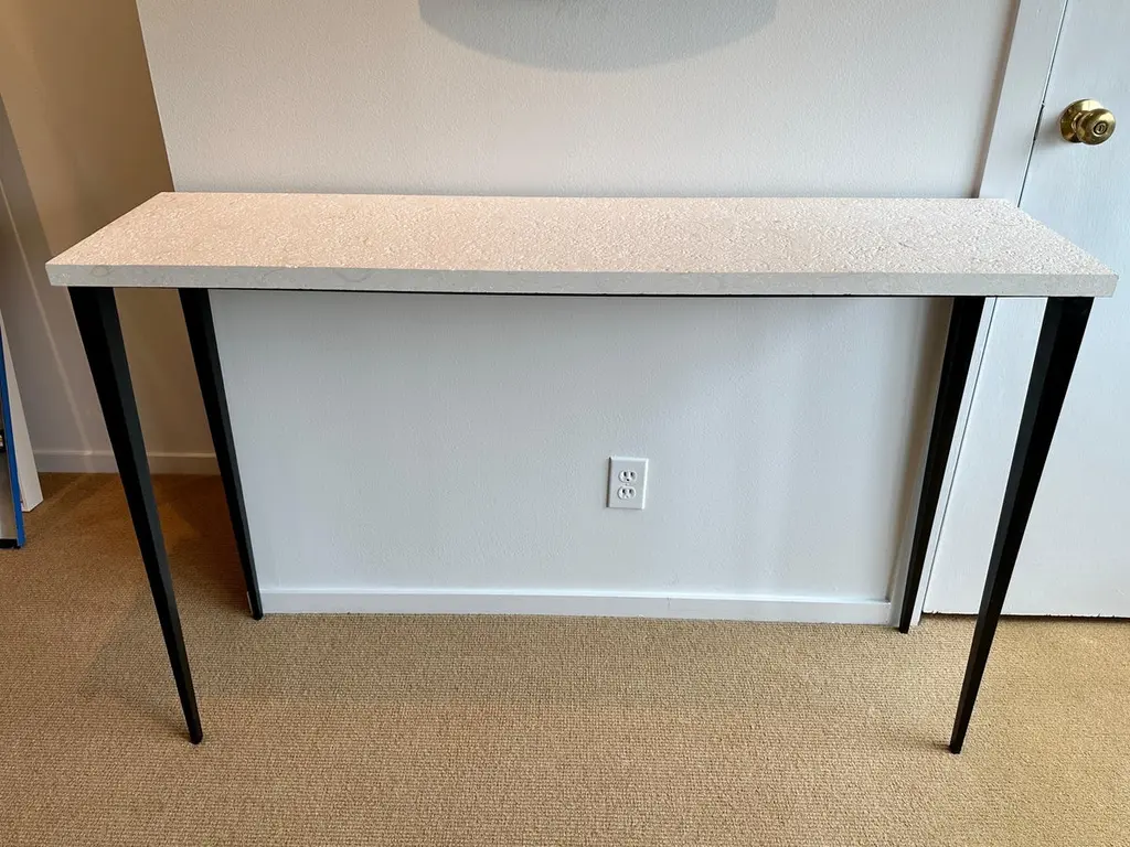 Jmf Style Blackened Iron Console W/ Thick Limestone Top