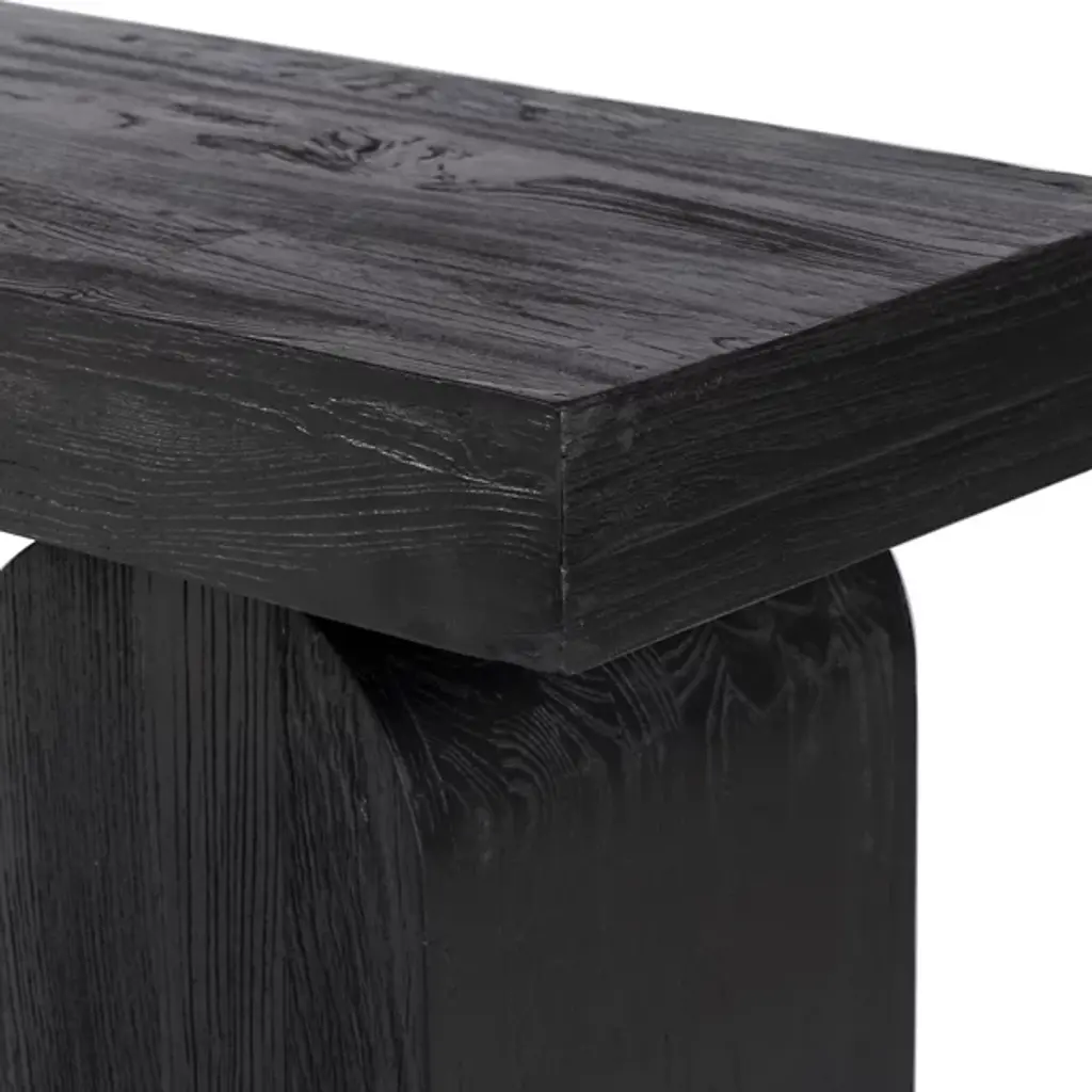 The Keane Console Table by Four Hands gives your decorative arrangement a look of fine artisanship. This console table is durably made and is composed of solid reclaimed elm for the betterment of our environment. Additionally integrated into this furnishment’s design is solid nettlewood. The Keane’s combination of materials gives it a mid-century modern aesthetic which is evidenced by the meticulously worked, dome-shaped legs which support the table’s flat surface.