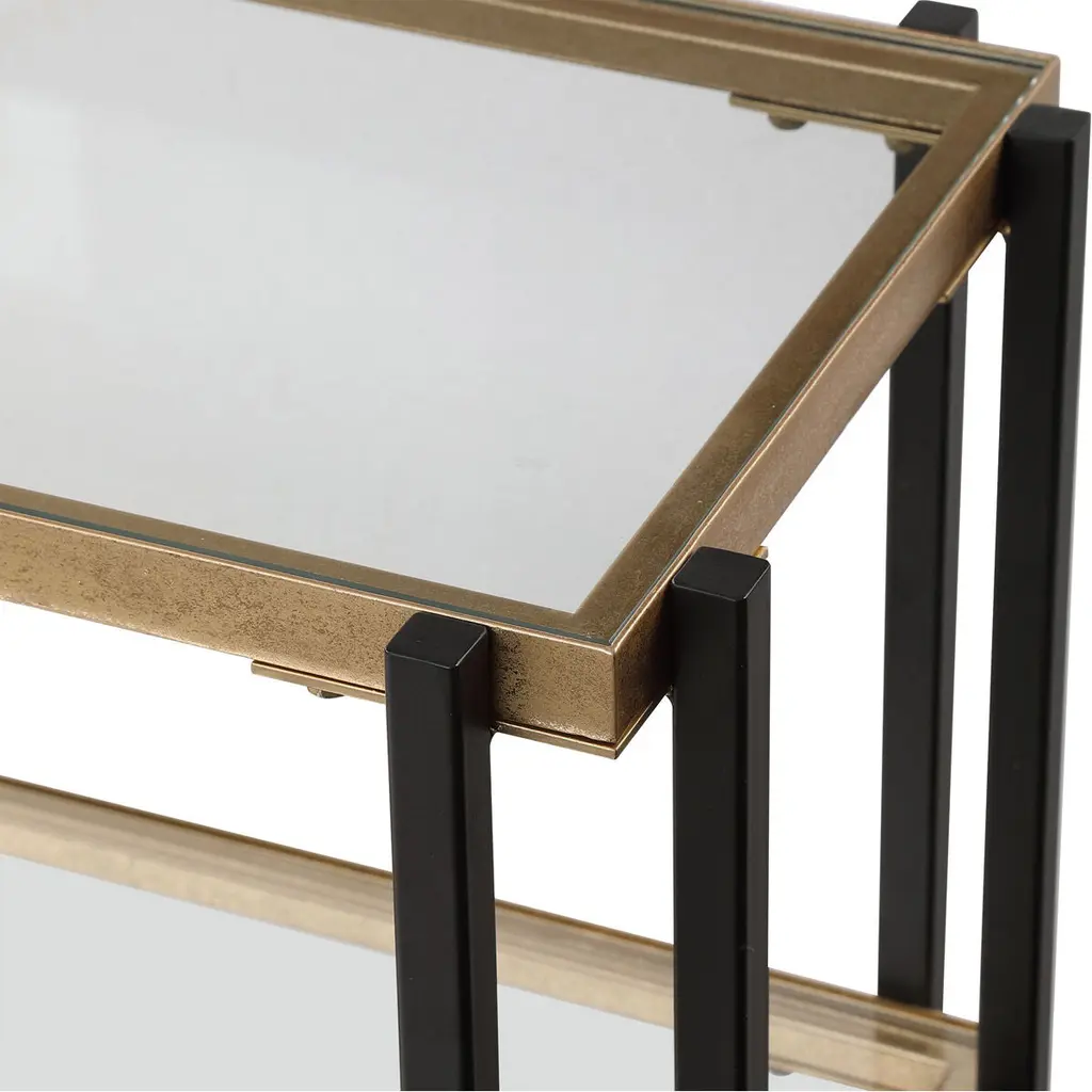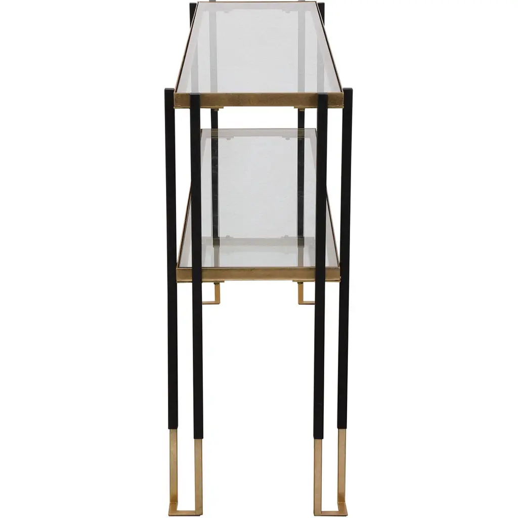 Featuring A Clean Lined Solid Iron Frame, This Contemporary Console Is Finished In A Two-toned Matte Black And Brushed Gold. Has Two Tempered Glass Shelves.