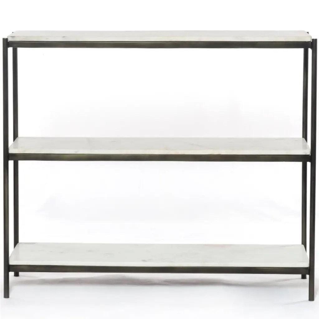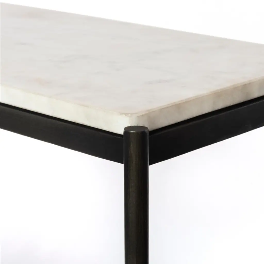 Kian Modern Classic White Marble Top Grey Metal Console Table