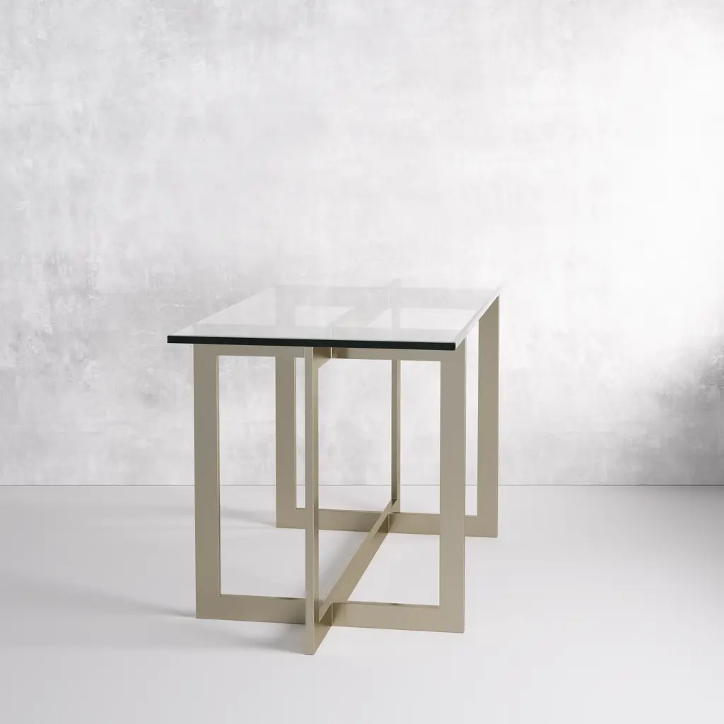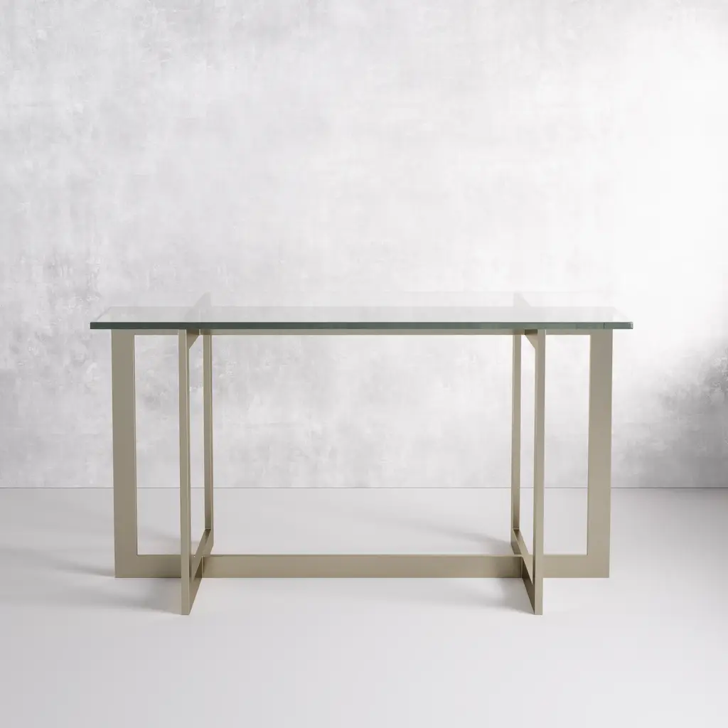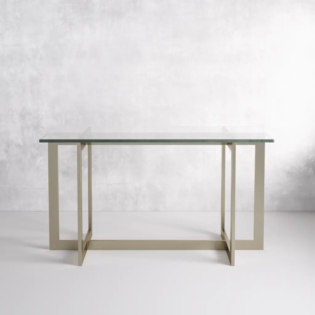 With a nickel frame and a glass top, this piece of decor is nothing short of iconic. Our La Spezia console is modern through and through. The geometric structure will add visual dimension to your living room, foyer, or hallway. Use our La Spezia console in your home, hospitality, or commercial space. Dimensions: 16.0''W x 66.0''D x 33.0''H Tear Sheet