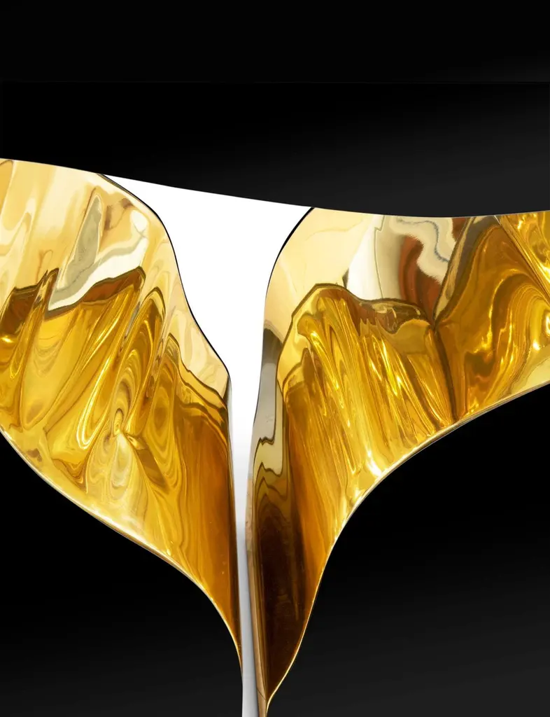 Lapiaz console takes exceptional craftsmanship and design to a new realm. Finding beauty in the most unexpected places, this contemporary design piece is inspired by authentic karst formations. Its organic features are achieved through the manual fitting of polished brass, and a sharp finish in polished stainless steel that portrays a perfect mirror. The hammered gold details and the mirrored façade conveys both dynamics and elegance, a beautiful duality between power and refinement to bring a new contemporary verve into interior design. A functional artwork piece born from cold and freshly cracked to showing off the world rich, golden details.