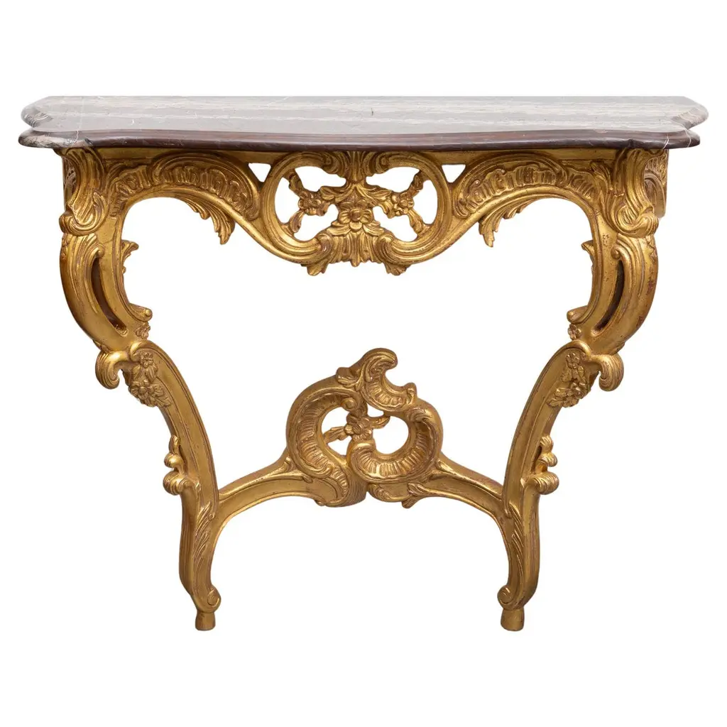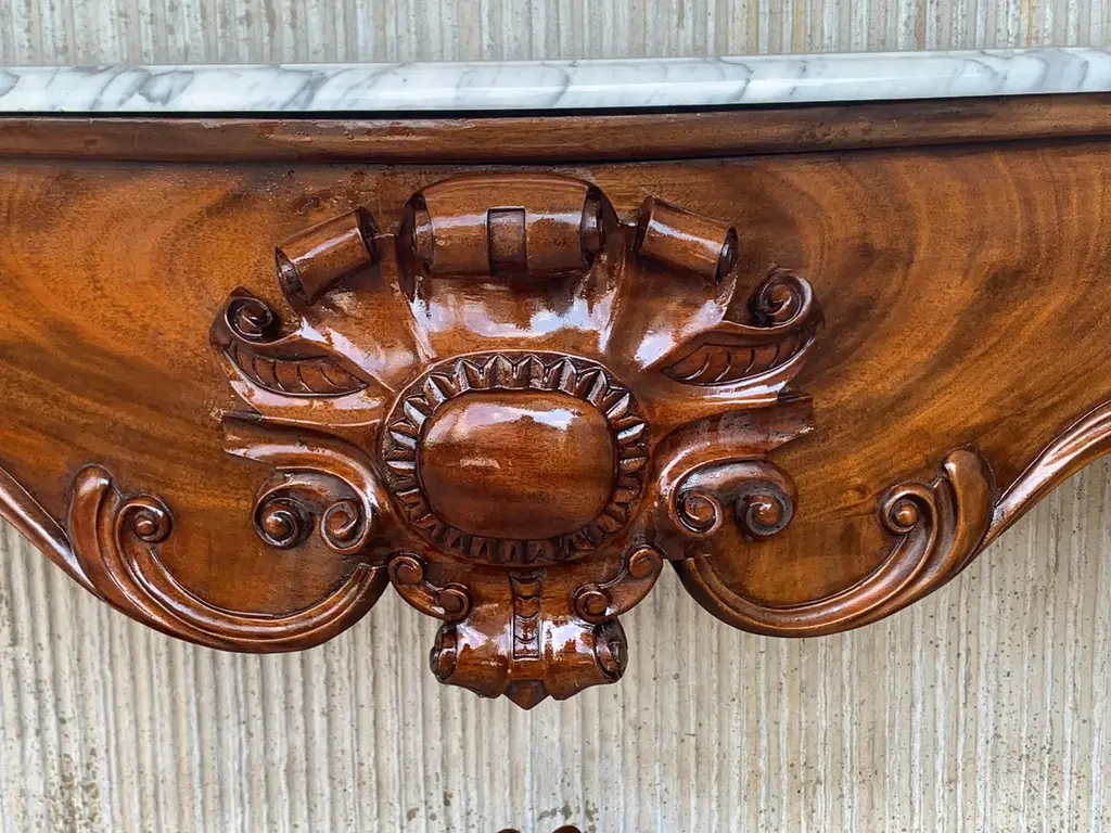 Large French Regency Carved Walnut Console Table With White Marble Top '2 Avai'