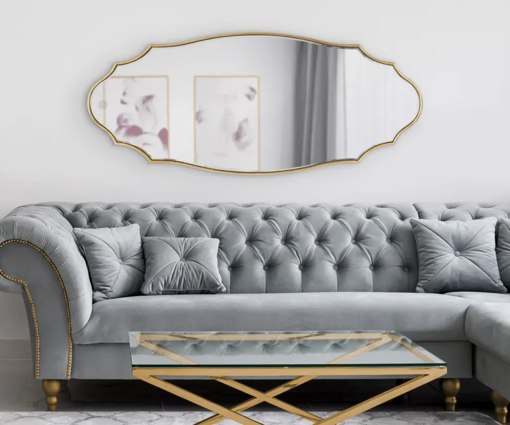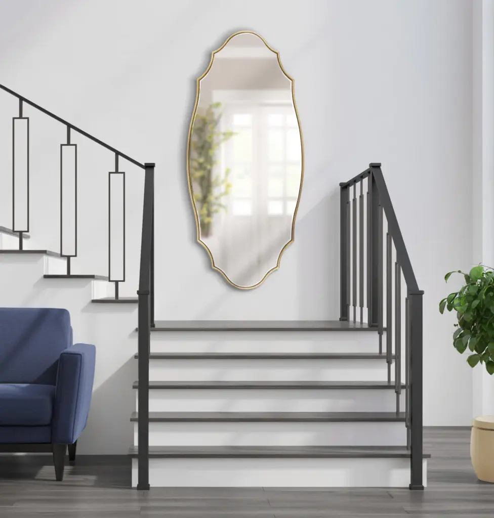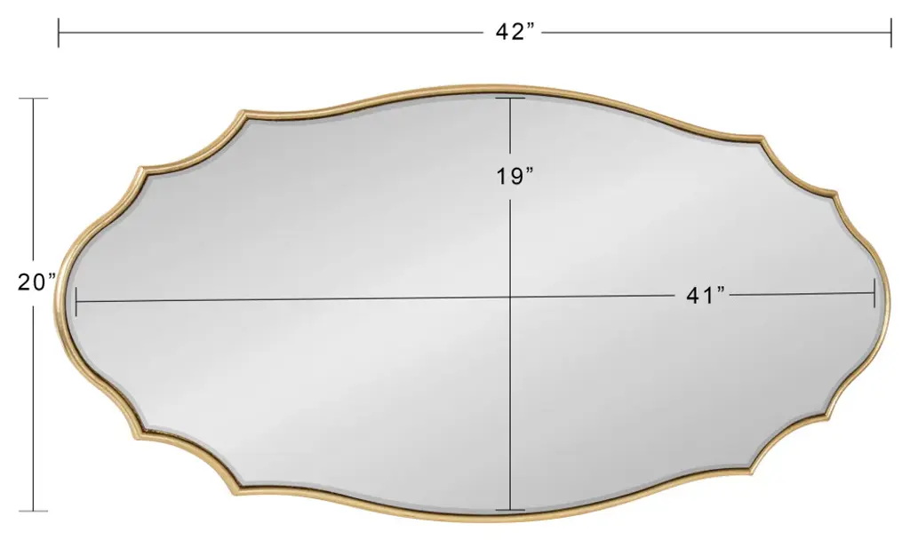 Decorate your beautiful home with the Leanna mirror, an accent piece that updates vintage aesthetics for the 21st century. The Leanna mirror incorporates a beautiful scalloped form on its elongated shape, creating a bursting effect on your wall that captures the imagination. On this frame, you''ll find a delicate gold leaf finish applied by hand to give it an authentic, one-of-a-kind look. The Leanna wall mirror''s overall dimensions are 20 inches by 42 inches, making it a fabulous statement piece for a variety of rooms. Hang it over your mantle, above your console table, or over a piece of furniture to add vibrancy to your living space. This mirror also looks superb as a bathroom mirror over your vanity. The Leanna hangs vertically and horizontally, allowing for a versatile focal point in any room. Hanging a mirror in any of these spaces increases their vibrancy, enhancing the room''s dimension by illuminating dark corners. Install your new Leanna mirror in a matter of minutes with the convenient metal D-ring hangers attached to the back of the frame.• SOPHISTICATED LOOK: The Leanna mirror features an elongated oval shape with a scalloped design, updating glamorous aesthetics for the 21st century home• BEAUTIFUL FINISH: The gold leaf finish on this dazzling mirror was applied by hand, giving it an elegant and glamorous look• AMPLE SIZE: The overall dimensions of this oval mirror are 20 inches by 42 inches, making it a dazzling statement for various spaces• VERSATILE: Use this mirror as a decorative focal point or as an elegant bathroom mirror over your vanity• EASY TO HANG: D-ring hangers are attached to the back of the Leanna for easy installation in minutes