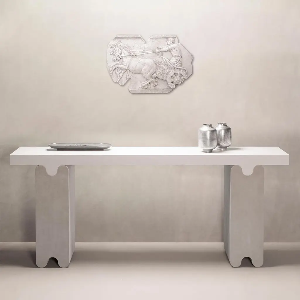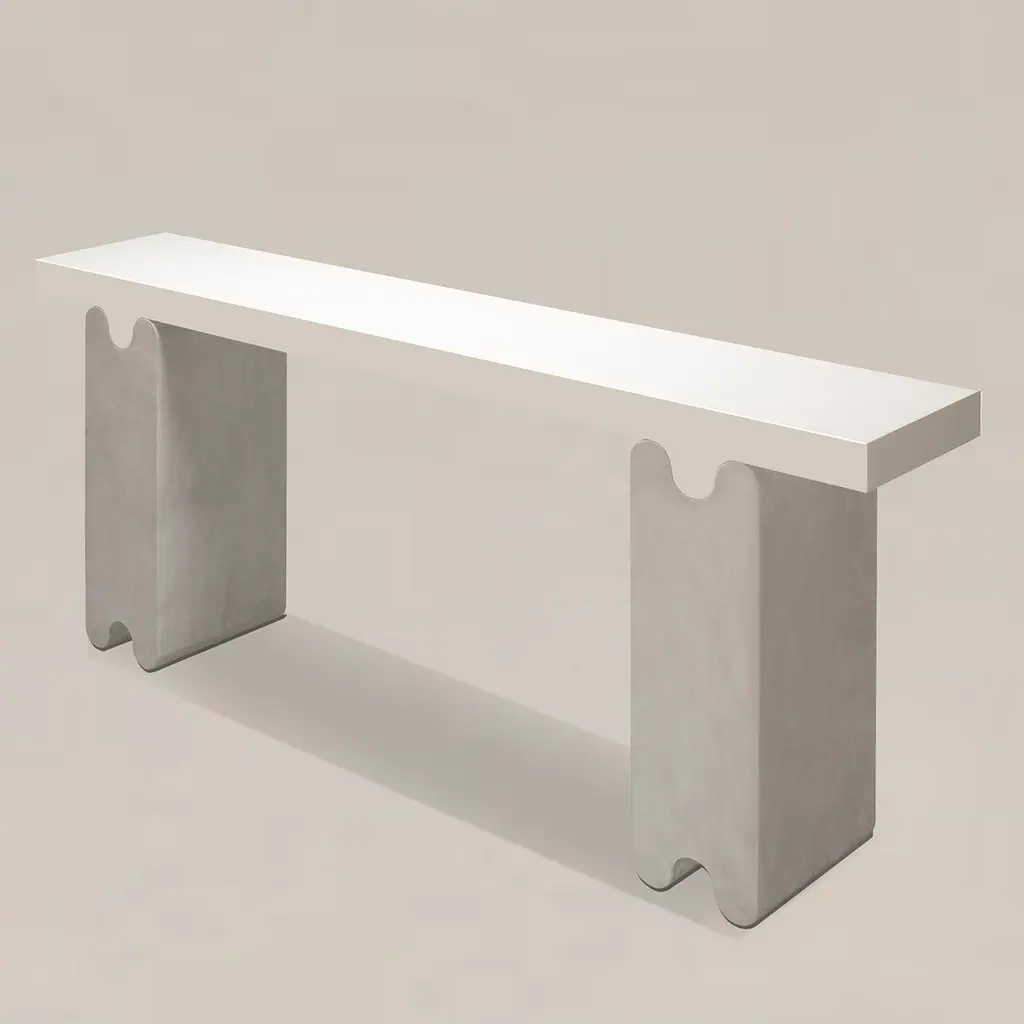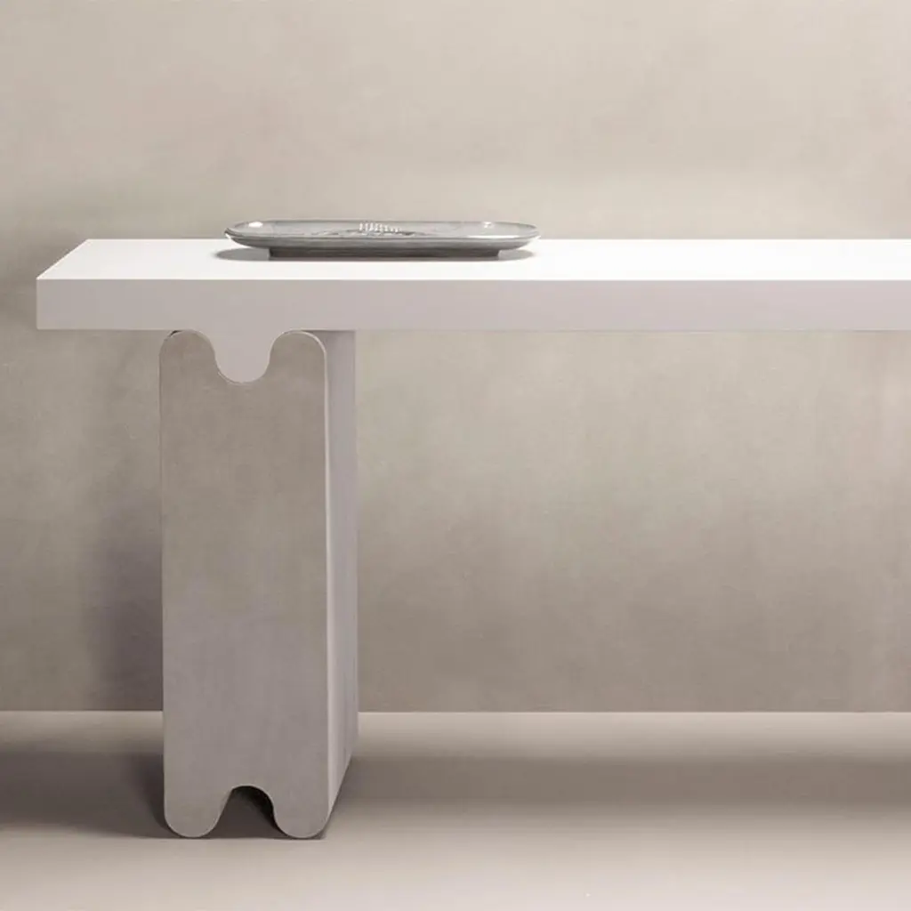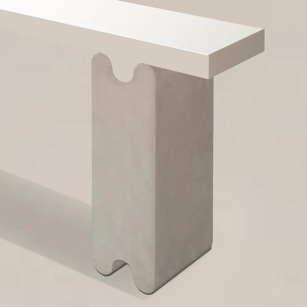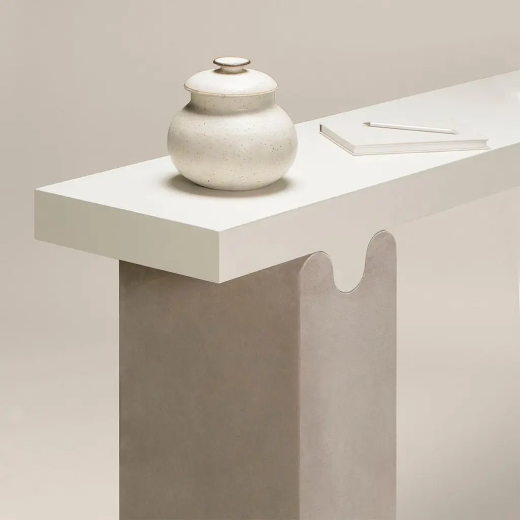 Console Liguria leather with solid wood structure, with covered top in genuine leather in white color finish,and with base covered in italian suede leather in stone color finish.Also available in other suede colors on request.