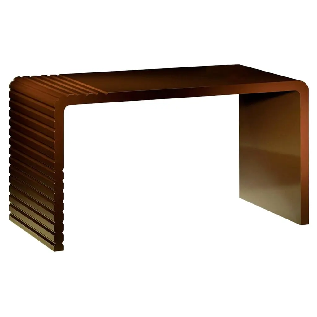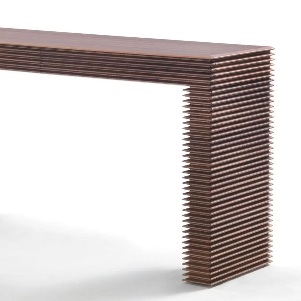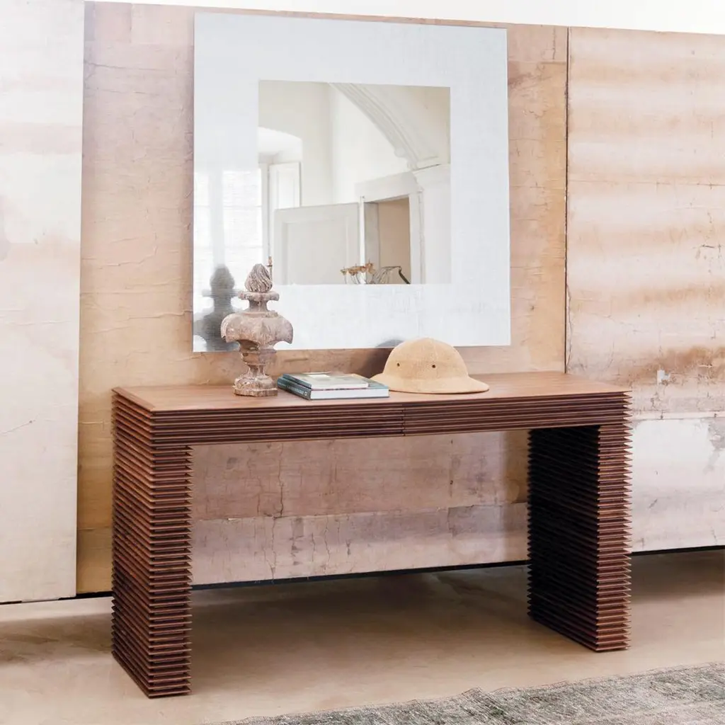 Console table lines with hand carved structurein varnished solid walnut wood. With 2 drawers.Made in Italy.
