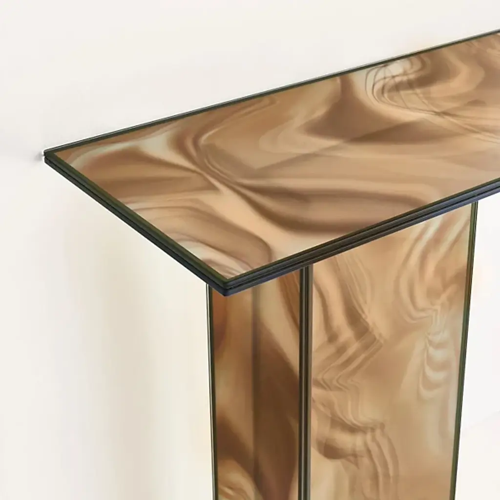 The Liquefy Console Table from Glas Italia shows off designer Patricia Urquiola’s experience with architectural design with an artistic and colorful design that evokes the texture of marble and the fluidity of water. The tall rectangular panes of Tempered Extralight Glass feature unique textures framed with painted borders to draw attention inward. The glass construction uses a minimalist form to elevate a rectangular tabletop, which is wide enough to hold accessories without protruding too far into its environment, excellent for large living spaces and entryways alike.