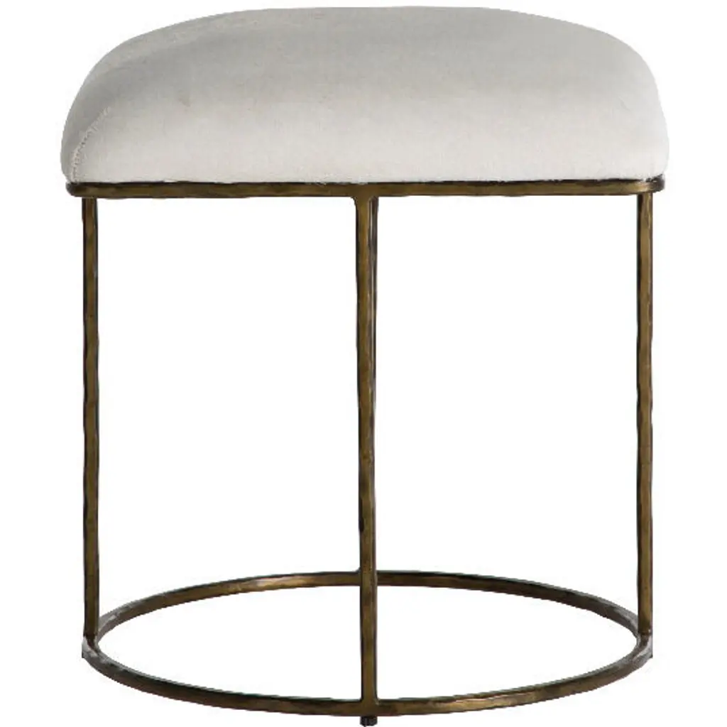 The modern-minded Lucas Stool offers a stylish and versatile seating option for any space. Featuring a square seat upholstered in an ivory hair-on-hide, it merges seamlessly with the circular brass base, creating a streamlined and harmonious design. Its compact scale makes it perfect as an impromptu dining stool, while its elegant design allows it to stow easily under an open hallway console table. Ideal for pairing in sets, the Lucas Stool is a functional and chic addition to your home, providing steady and stylish seating whenever needed.