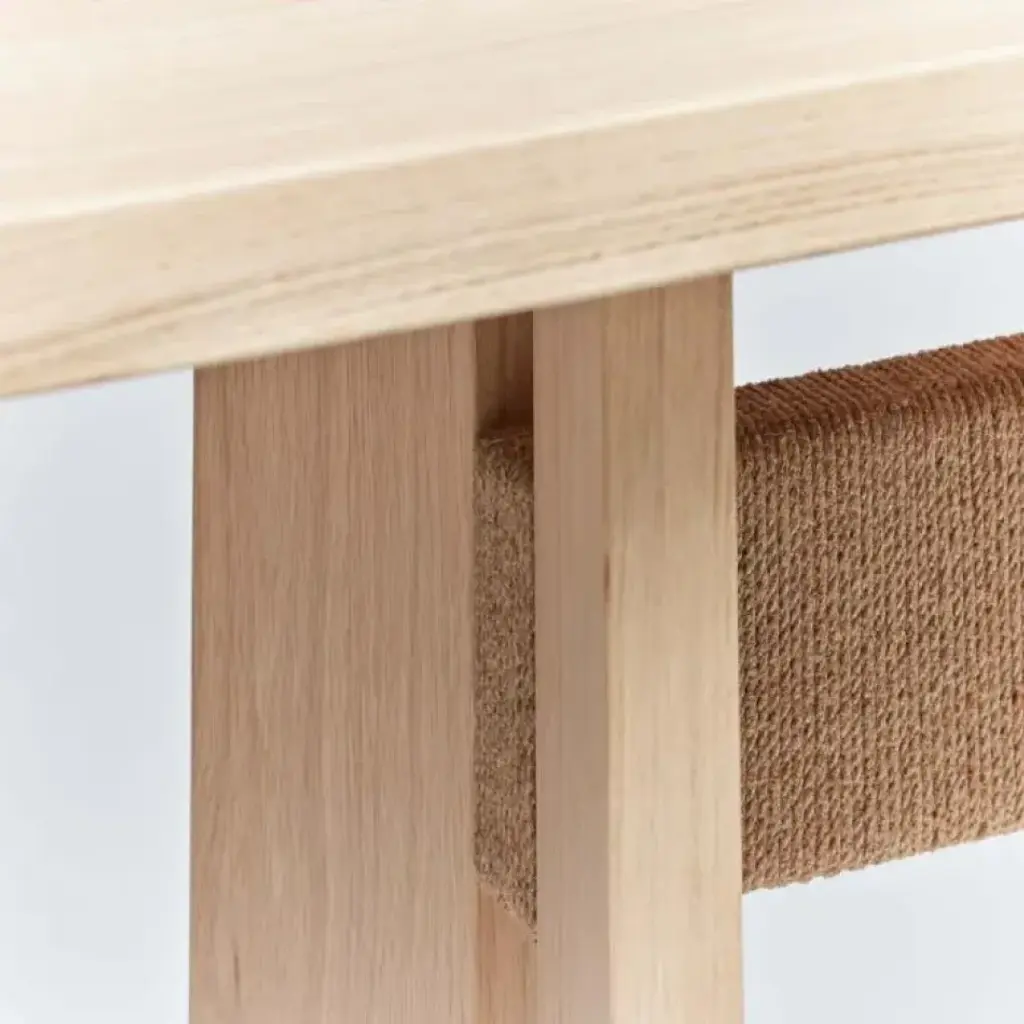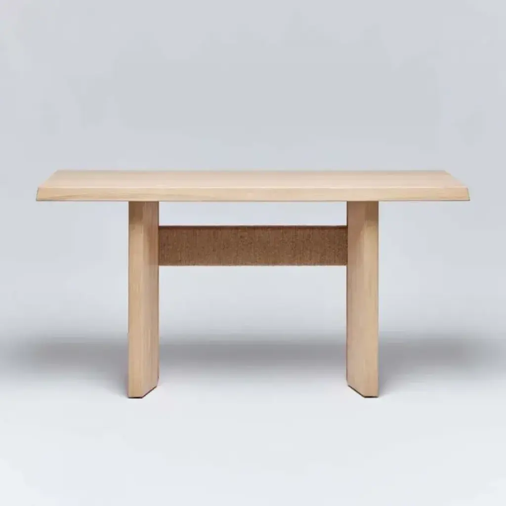An of-the-moment take on a trestle, the Lummus Console Table in saddle-finished oak with jute-wrapped detailing, makes a bold yet classic statement. This item is made of solid wood. Item will not be exactly as pictured, subtle deviations in hue after finishing can be expected as a result of natural variations in coloration of the base material.