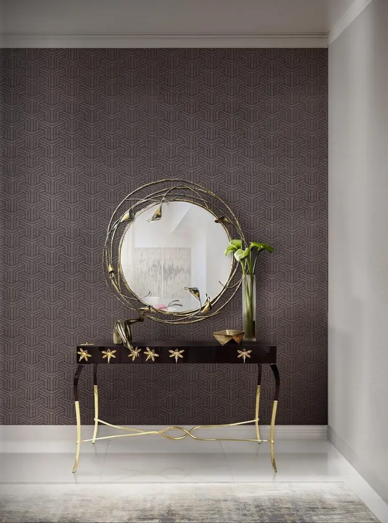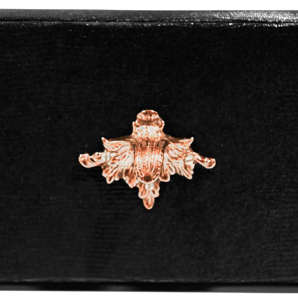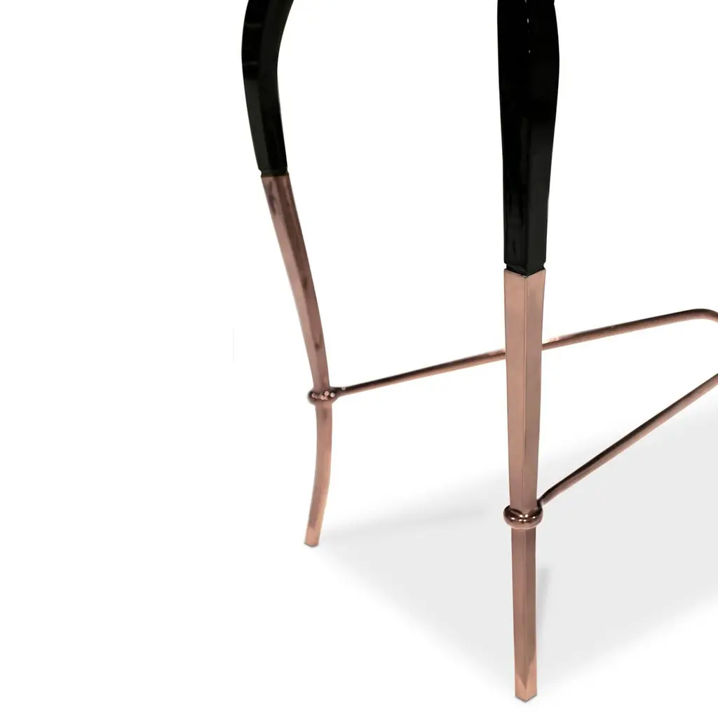 Undergoing a sultry revamp, the Luridae Console emerges with a tantalizing yet sophisticated new aura. Shedding the golden dragon ies, her top is adorned in tightly wrapped, shimmering reptile embossed leather with ornate metal pulls on each of her four drawers. The seduction conti nues down the base and the delicately twisted metal legs.