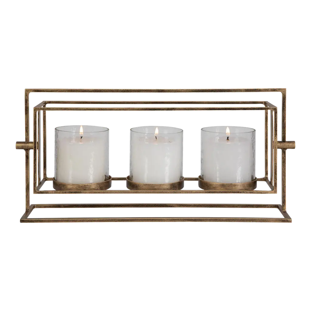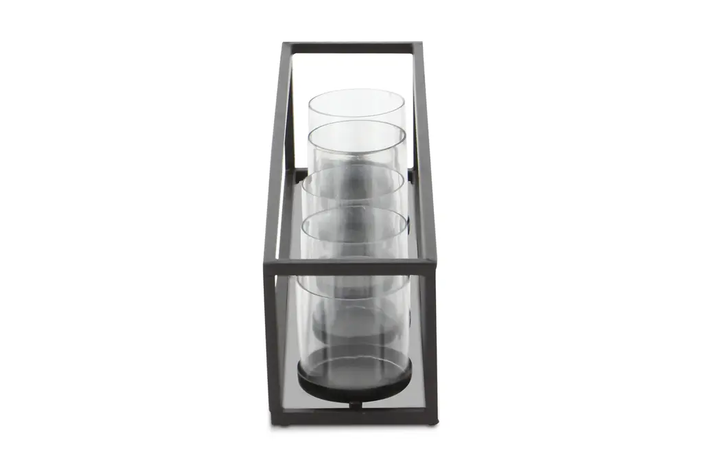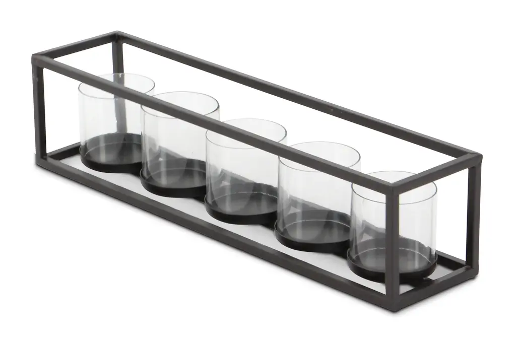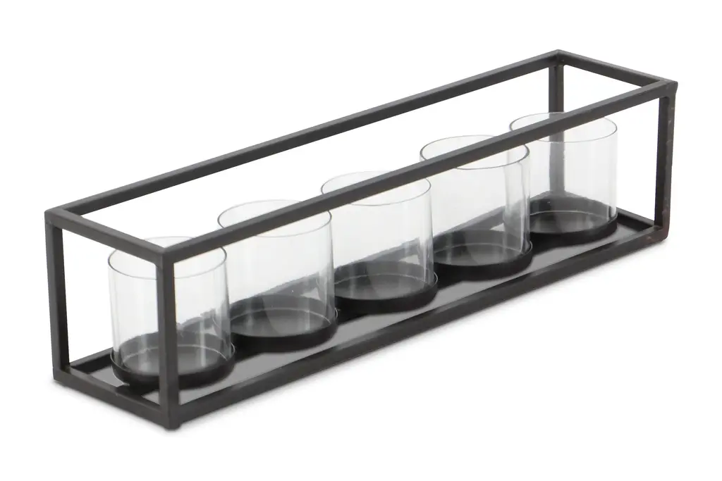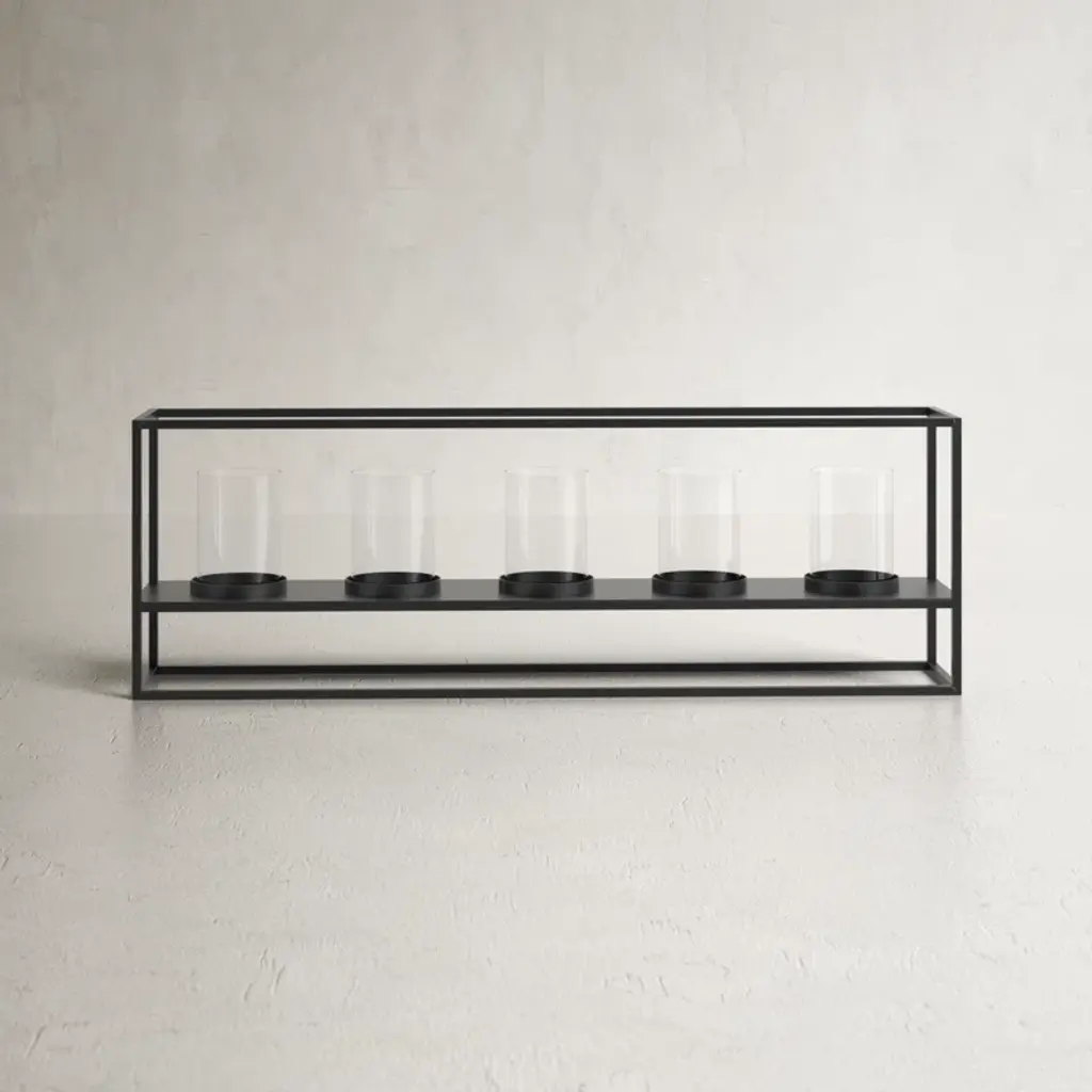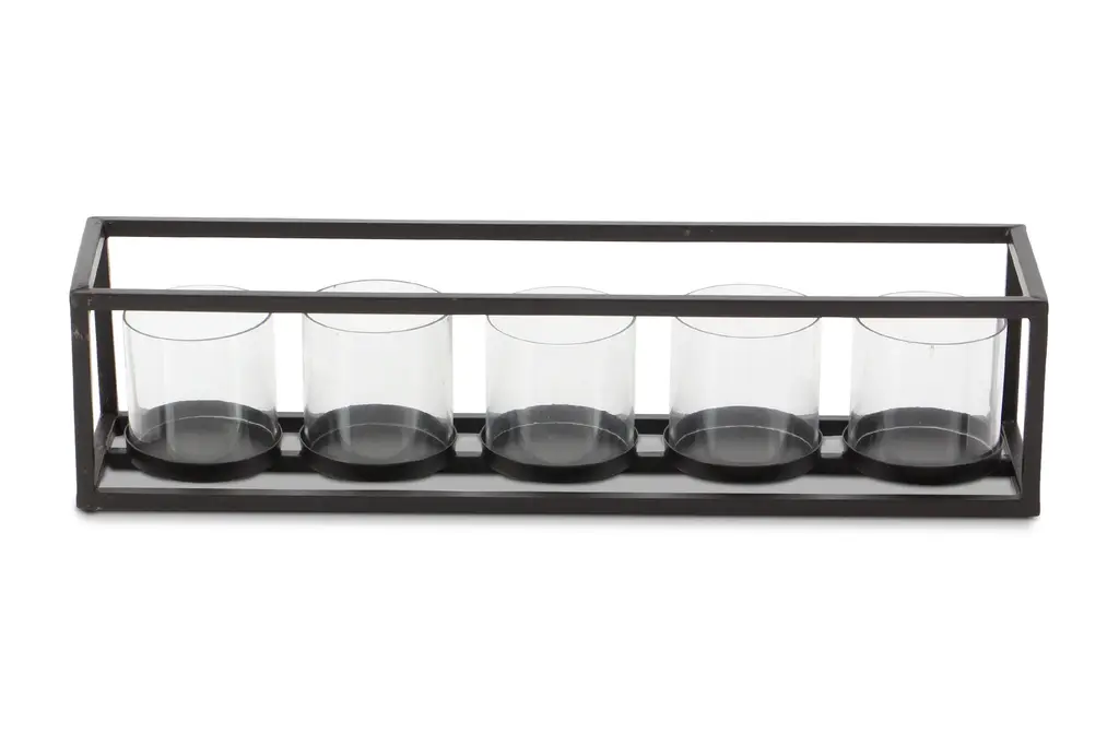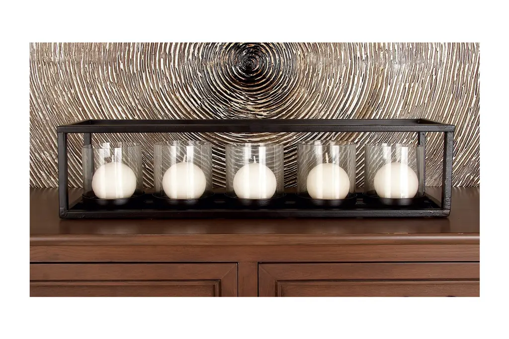 The Macy Candle Holder makes a stunning focal piece for your dining or console table. It features a black metal frame with five glass candle holders.