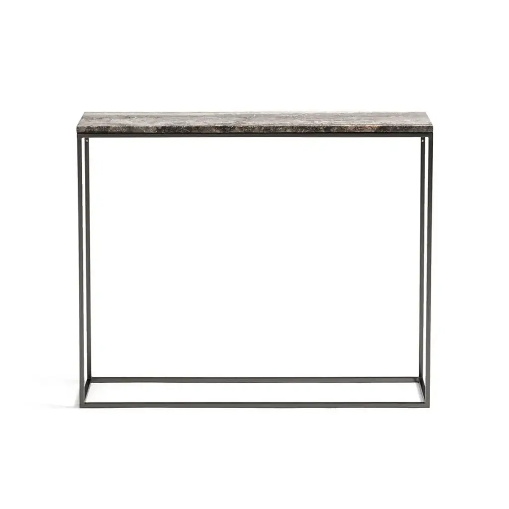 The Mahaut console table stands out for its combination of elegance and simplicity with a grey travertine top and a blackened nickel finish metal frame.Metal frame in blackened nickel finishGrey travertine topEach piece is unique, the colours and roughness may vary from one tray to another