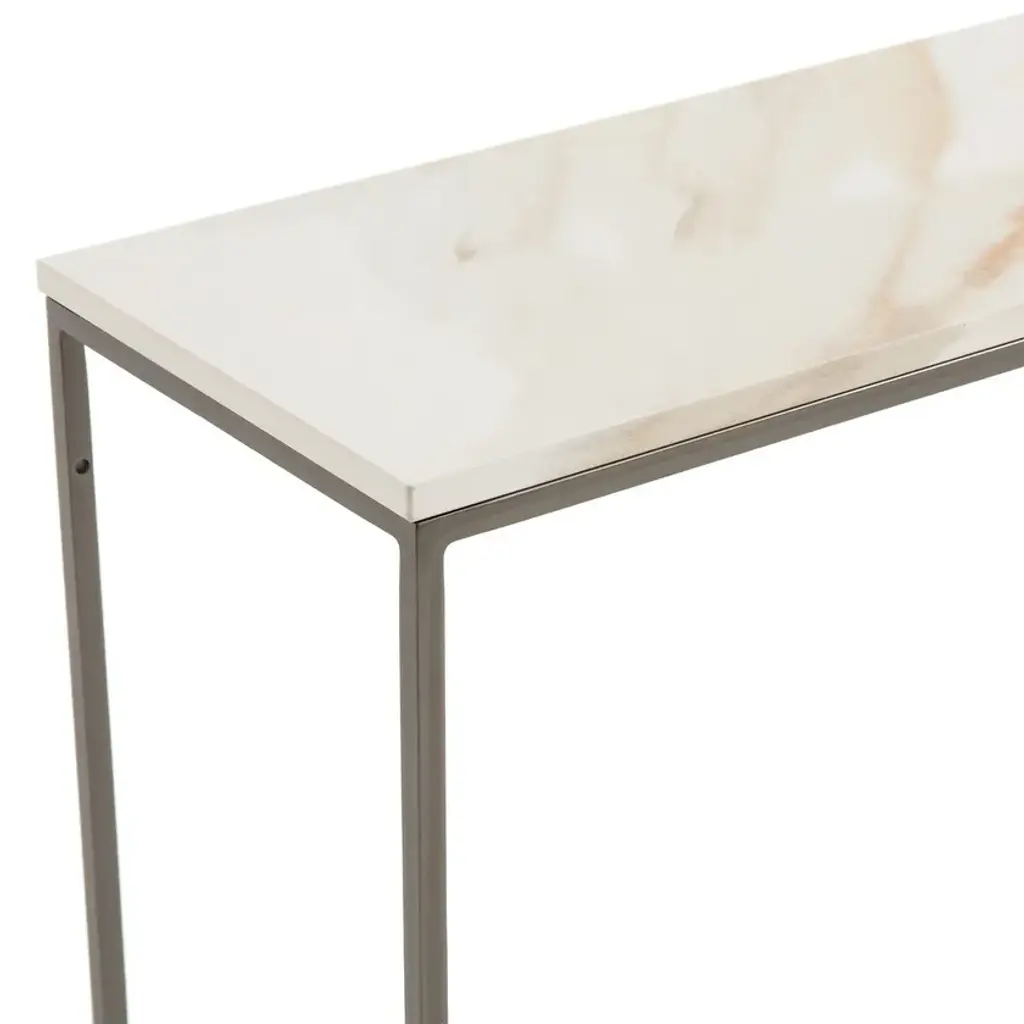 The Mahaut console cabinet is distinguished by its combination of elegance and simplicity, with a marble-effect ceramic top and a high-quality blackened nickel-finish steel frame. Ceramic is a stain-, impact-, scratch- and heat-resistant material. It combines aesthetics and functionality.Marble-look ceramic top. Each piece is unique, the colours and marbling may vary from top to top.Steel frame with blackened nickel finish