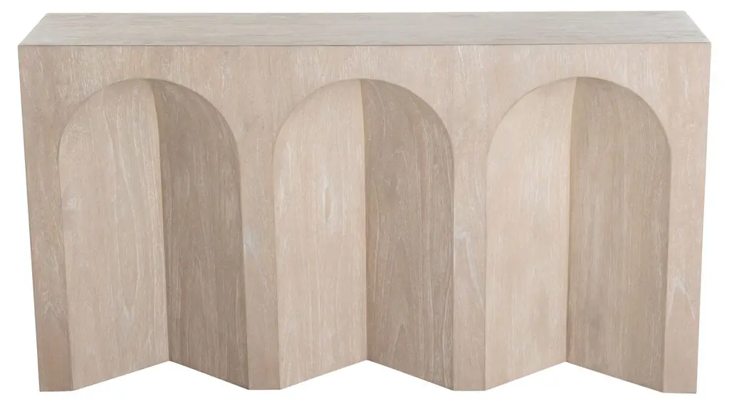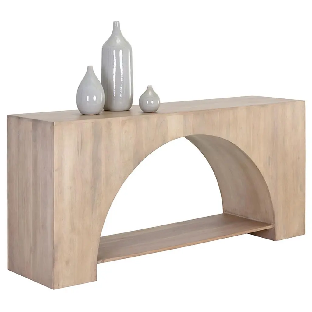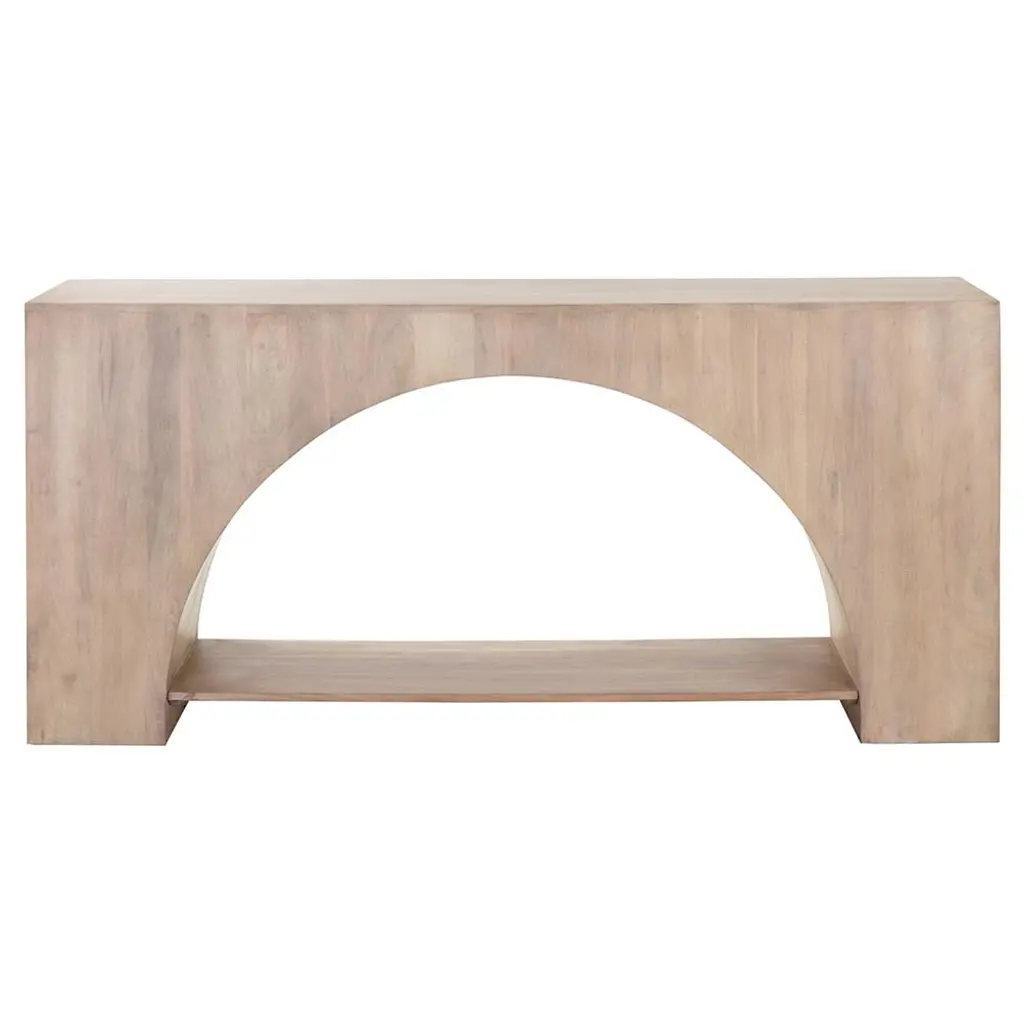 Mahoney Rustic Light Wash Brown Acacia Wood Arched Rectangular Console Table